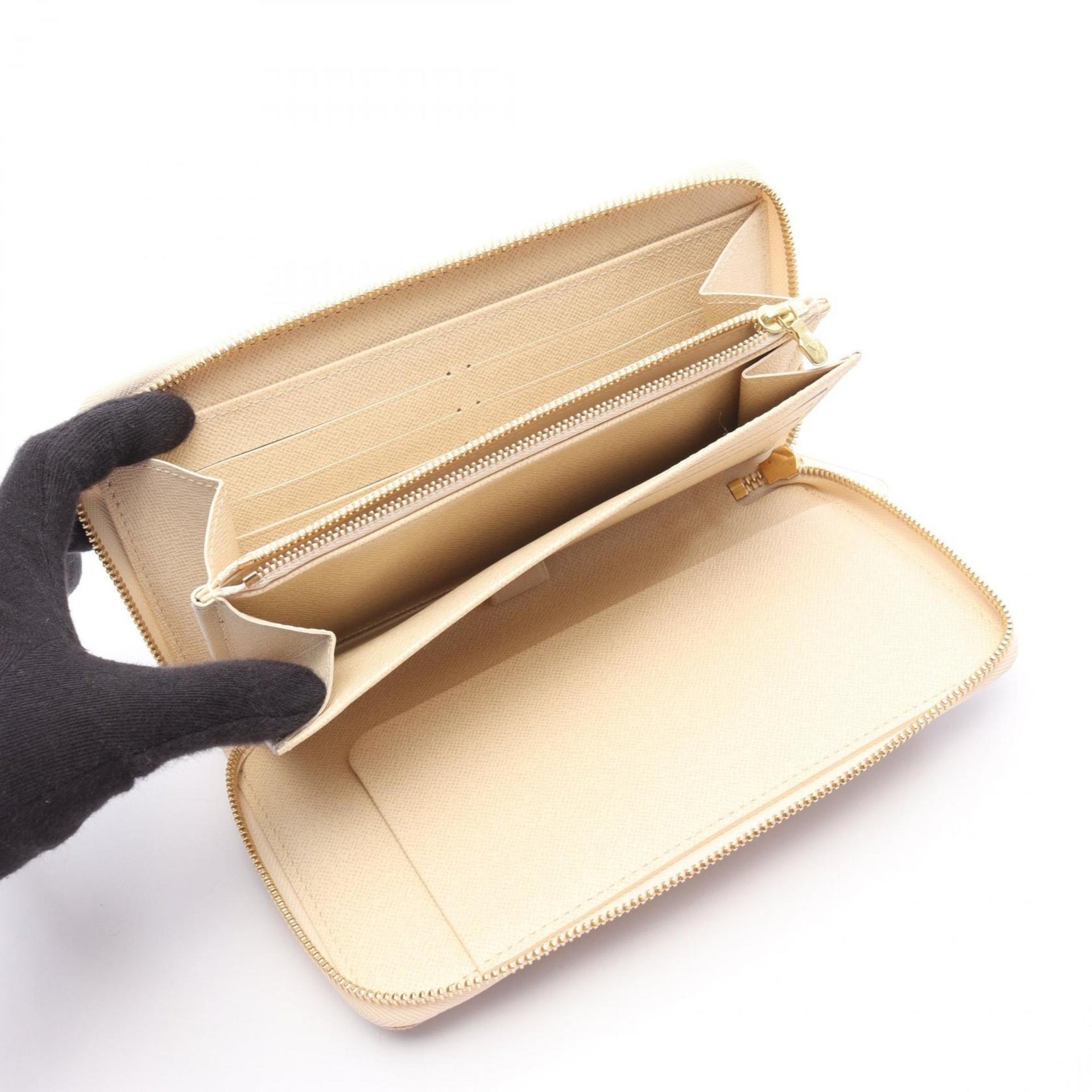 Louis Vuitton Zippy Organizer Round Long Wallet, Coated Canvas and Leather with Damier Azur Pattern, Women\'s, White, N60012