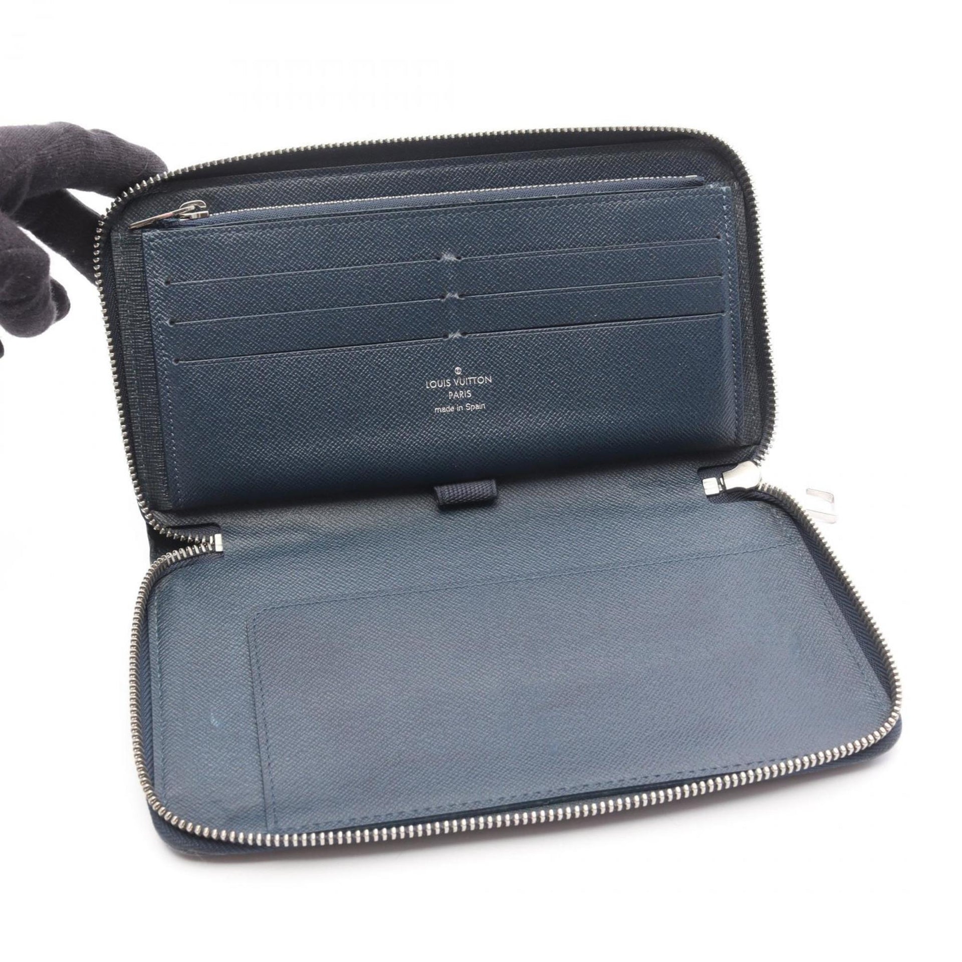 Louis Vuitton Zippy Organizer Round Long Wallet, Leather Taiga, Men\'s, Navy, M30515