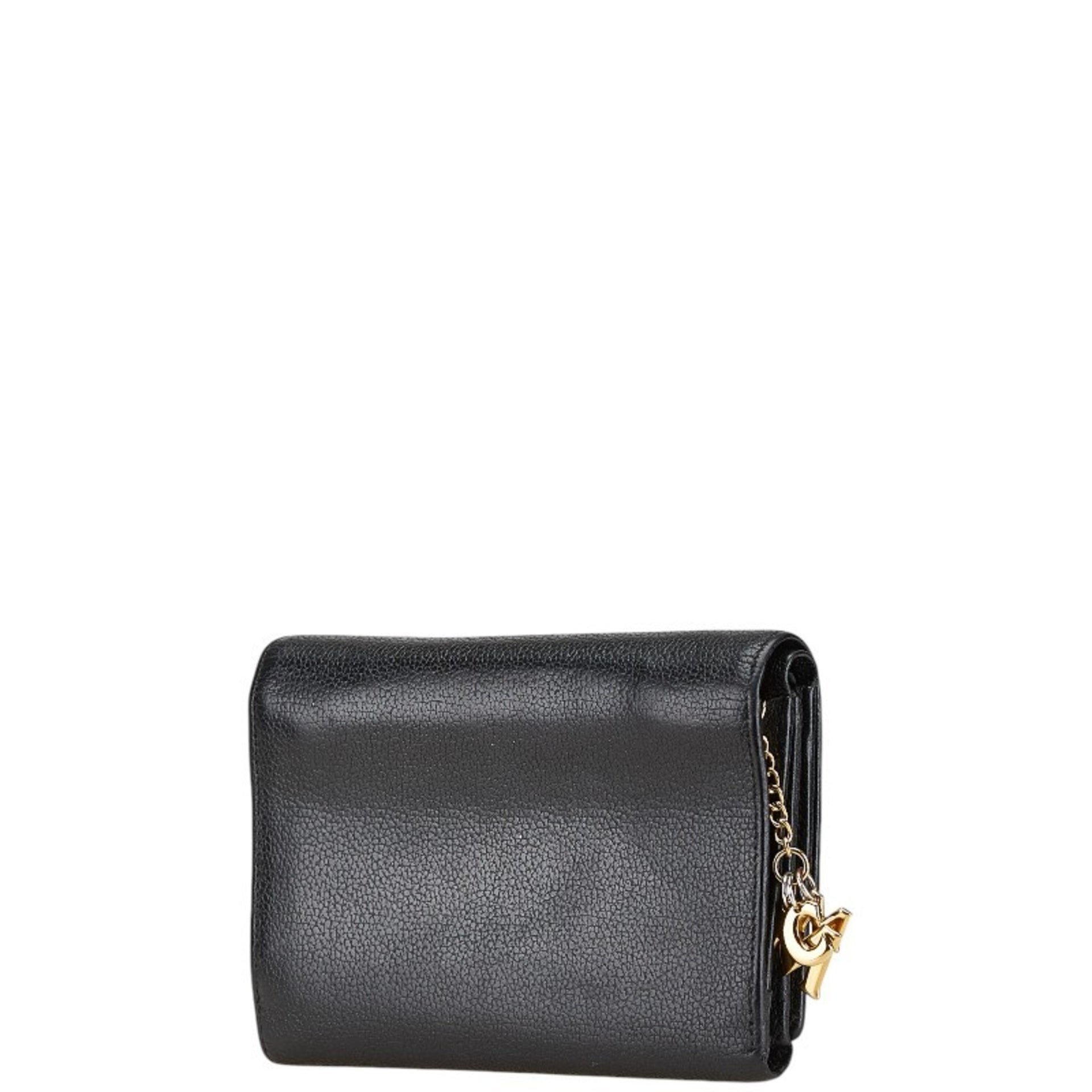 MCM Logo Metal Tri-fold Wallet Black Leather Women\'s