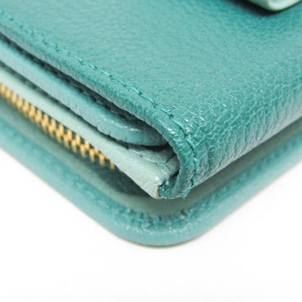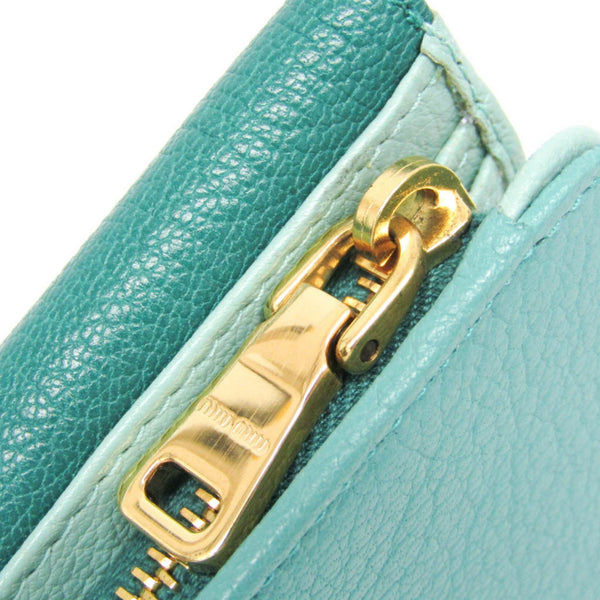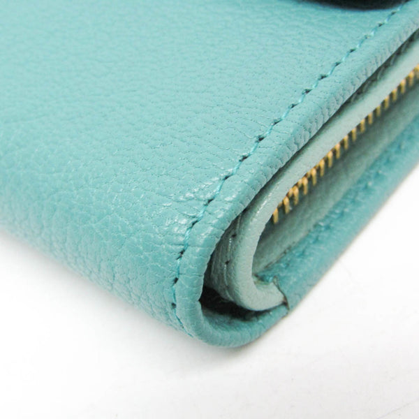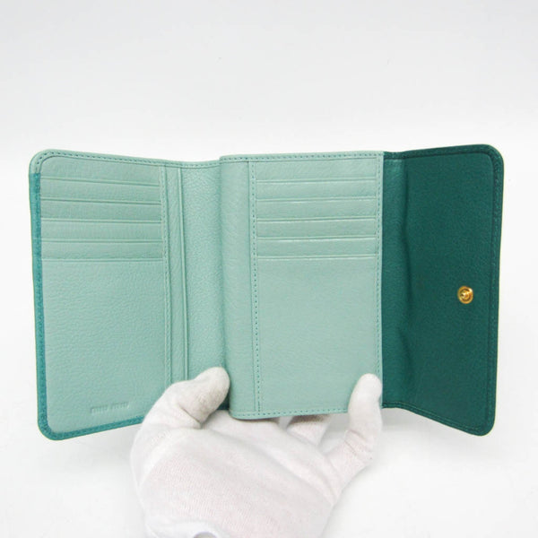 Miu Miu Ribbon 5ML225 Women's Leather Middle Wallet (tri-fold) Green,Light Blue