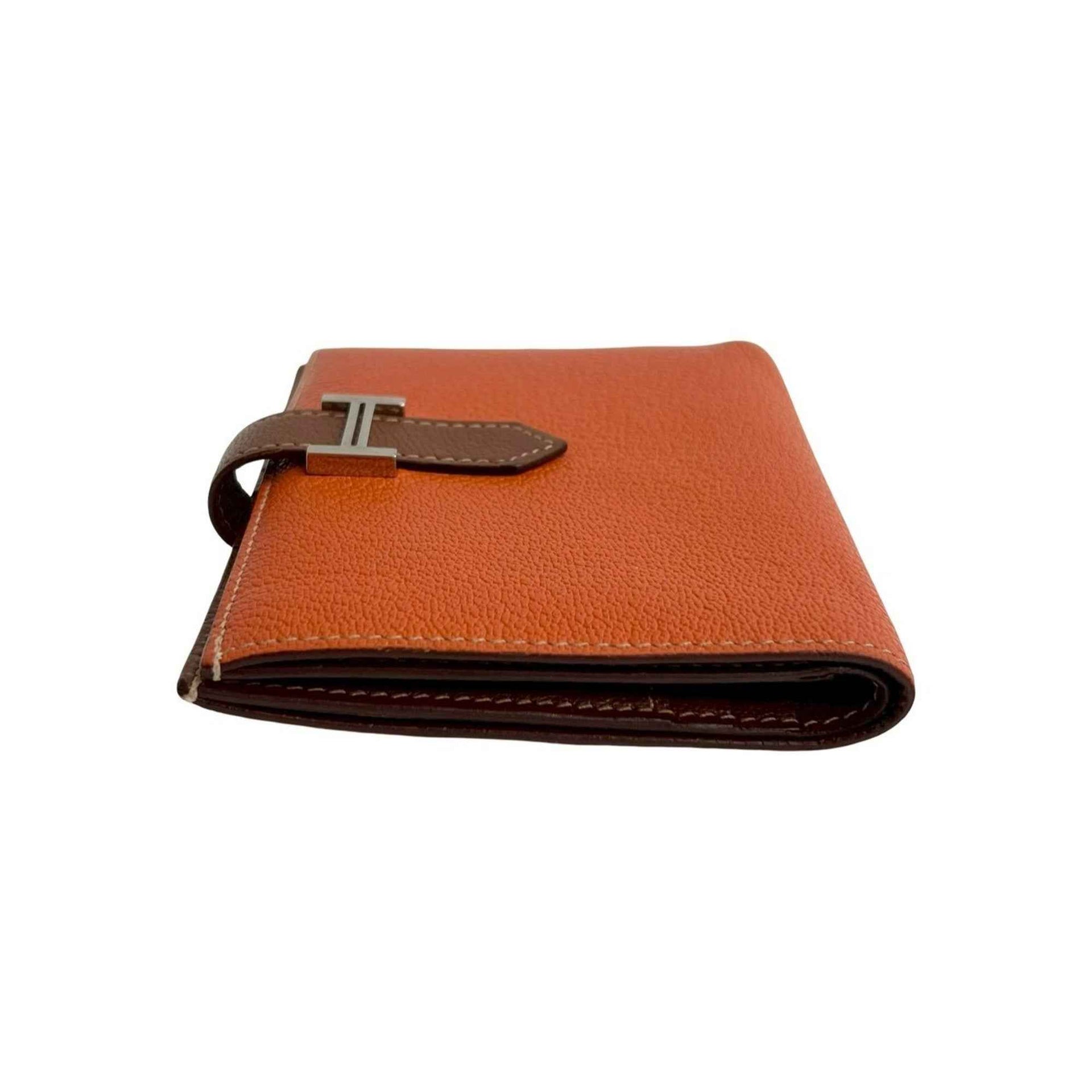 □O Stamped HERMES Bearn Compact Chevre Mysore Leather Bi-fold Wallet Mini Orange Brown 43254