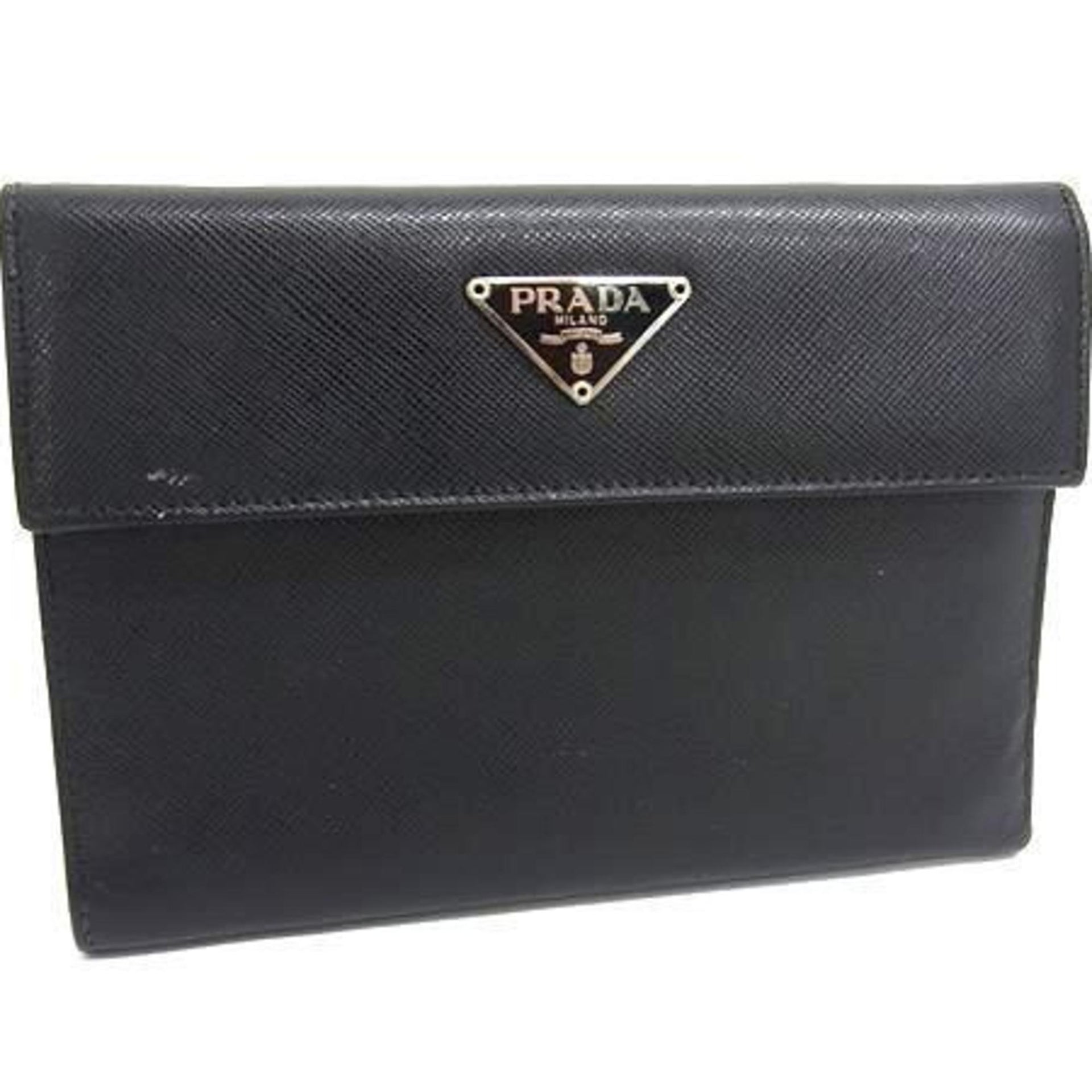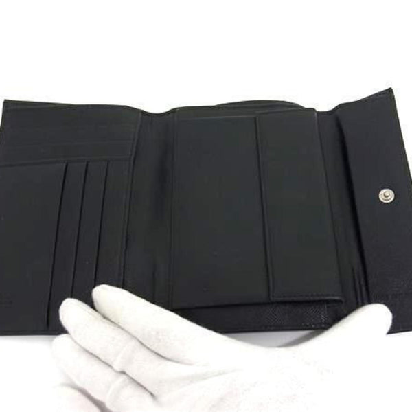PRADA Prada Triangle Wallet M510 Black Saffiano Leather Women\'s Trifold Mark