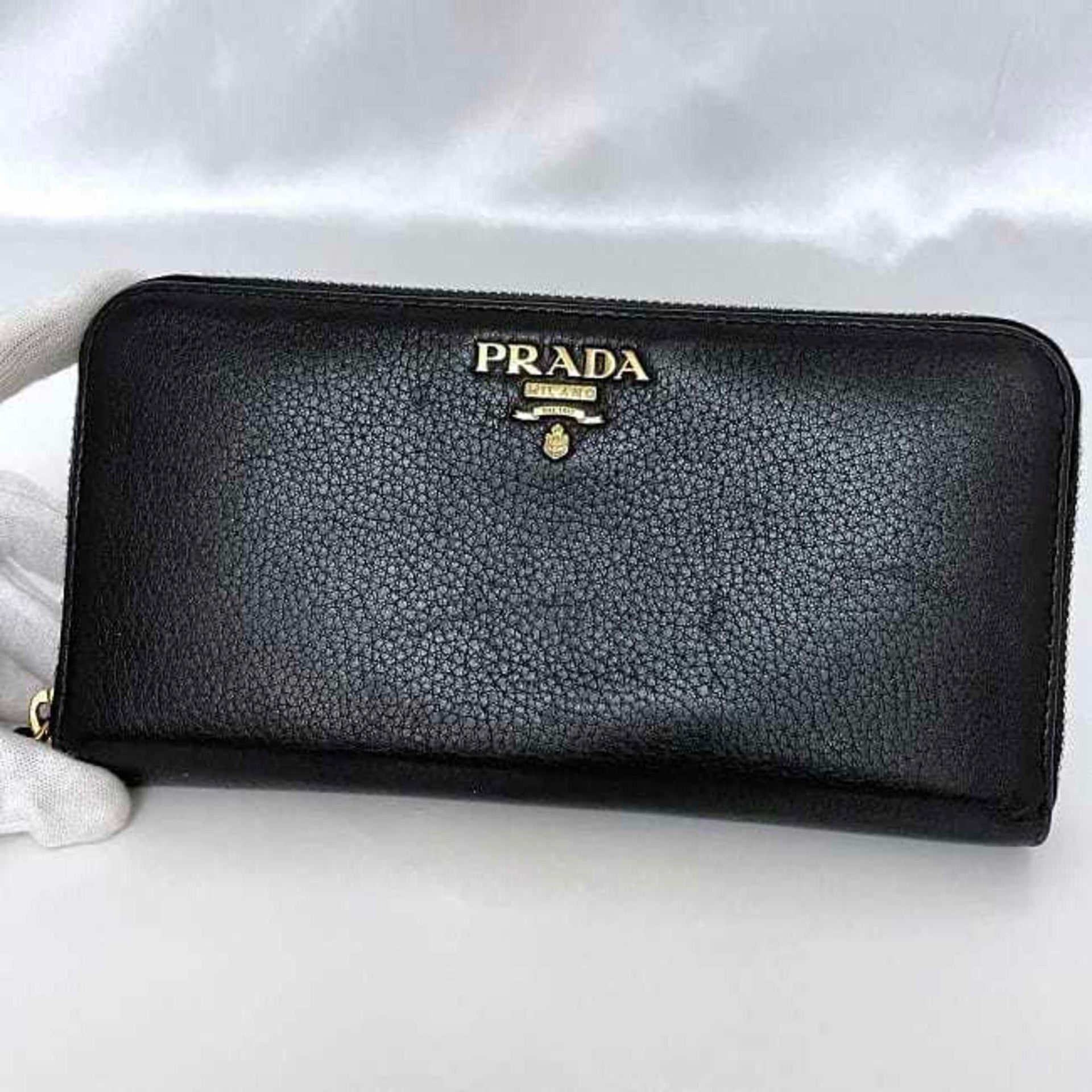 Prada Round Long Wallet ec-23707 Black NERO 1ML506 Leather 62B PRADA Soft Men\'s Women\'s