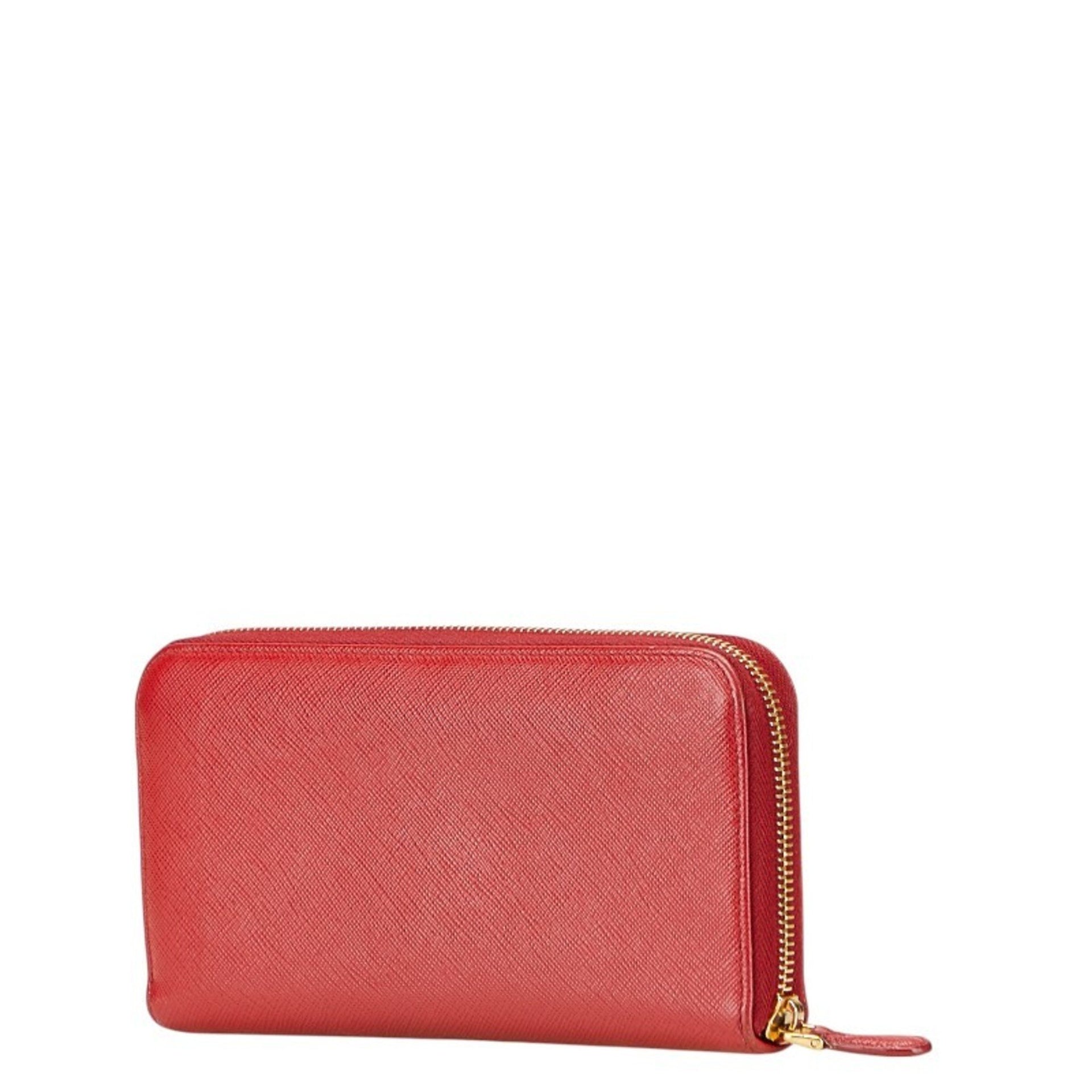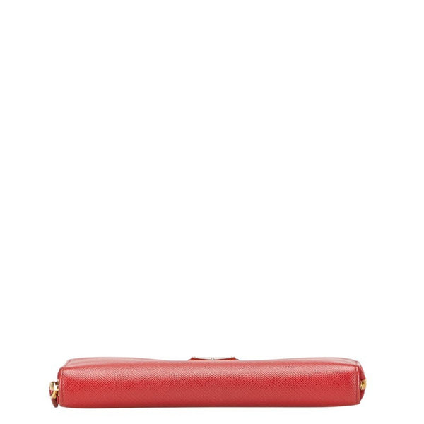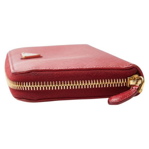 Prada Triangle Logo Plate Round Zip Long Wallet 1ML506 Red Saffiano Leather Women\'s PRADA