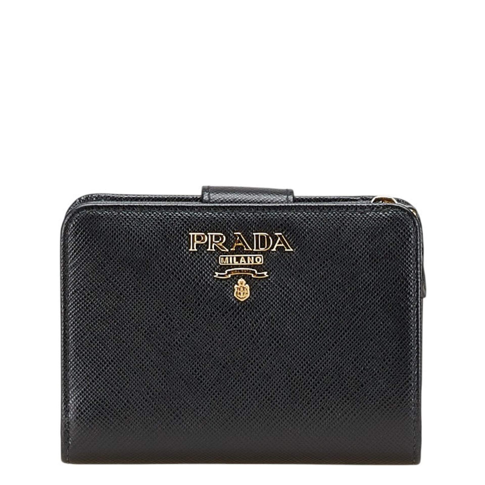 Prada Women\'s Bifold Wallet 1ML018 Black Leather