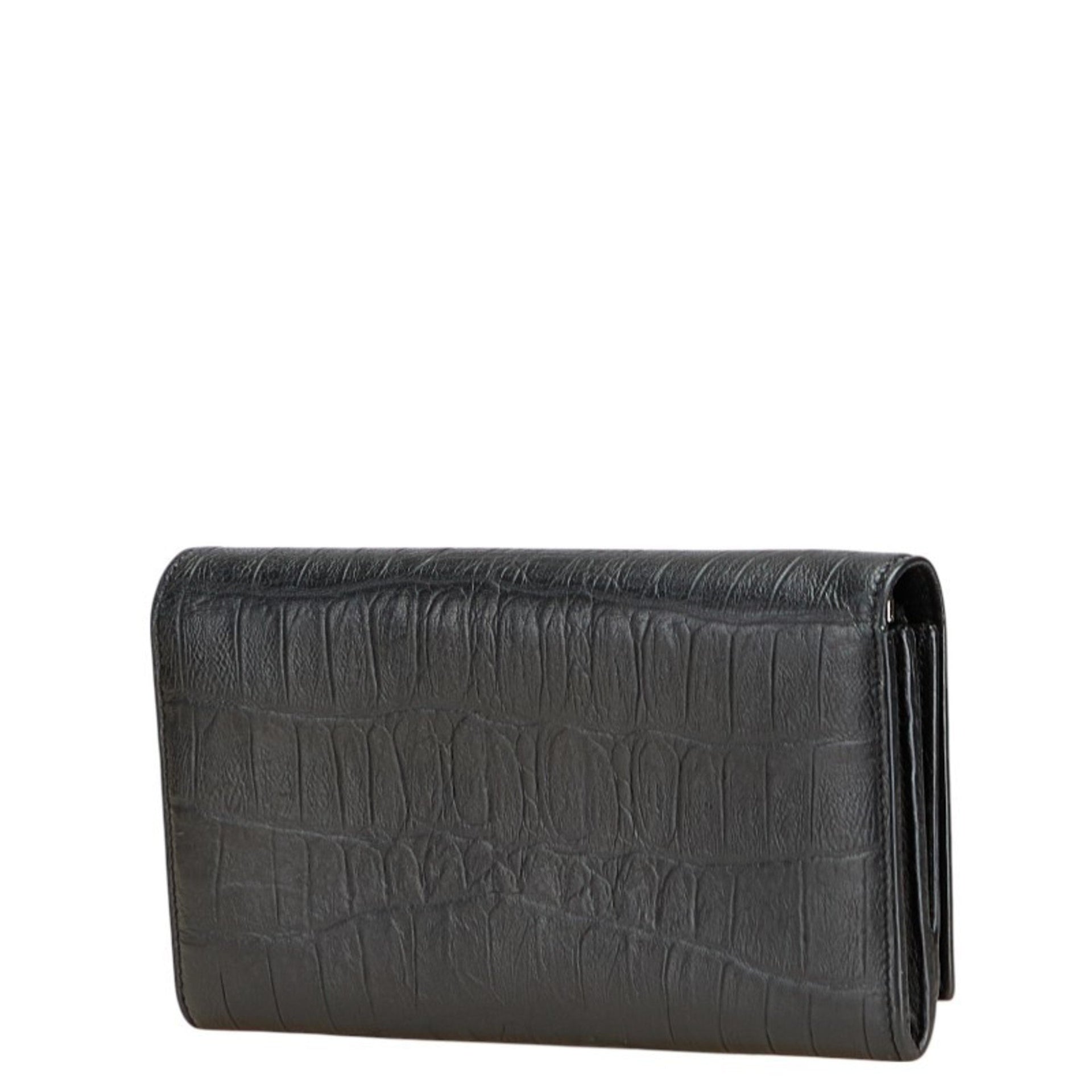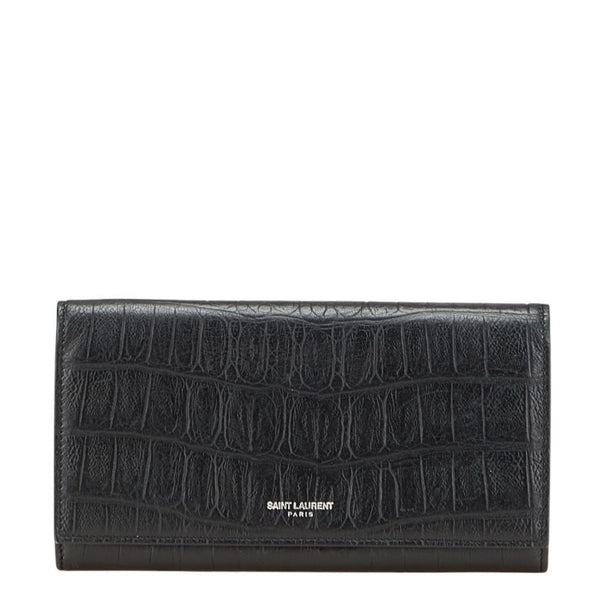 Saint Laurent Crocodile Embossed Long Wallet Black Leather Women\'s SAINT LAURENT