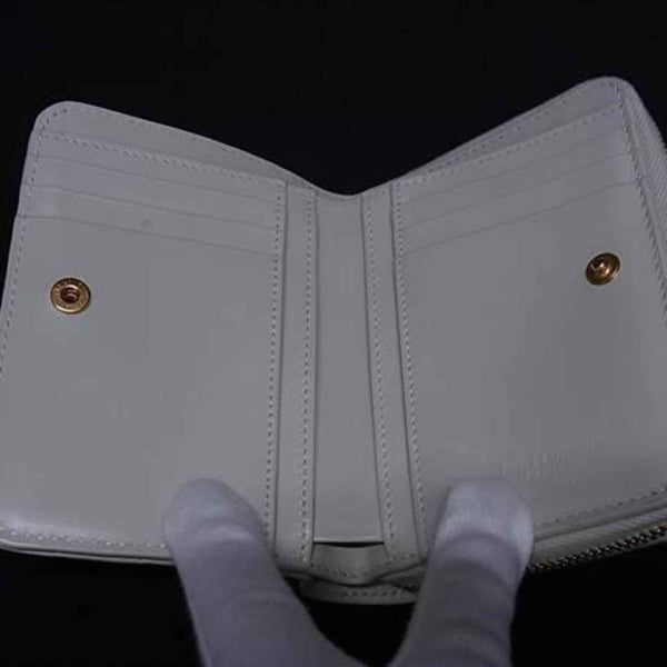 SAINT LAURENT JOAN 650981 Ivory Leather Bifold Wallet, Women\'s Round