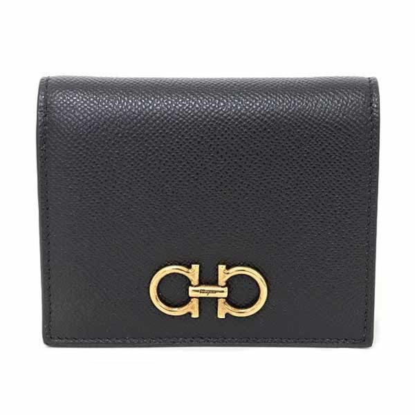 Salvatore Ferragamo Double Gancini Bifold Wallet Calfskin 22D780 726512 Black Unused