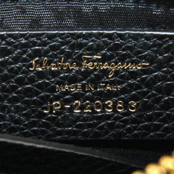 Salvatore Ferragamo Double Gancini Coin Case 220383 Black Leather Mini Wallet Compact for Women