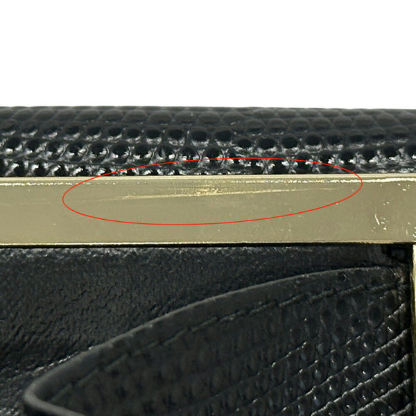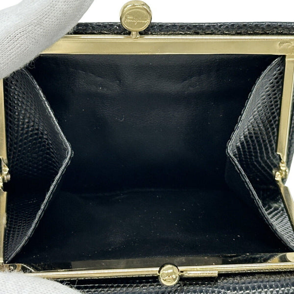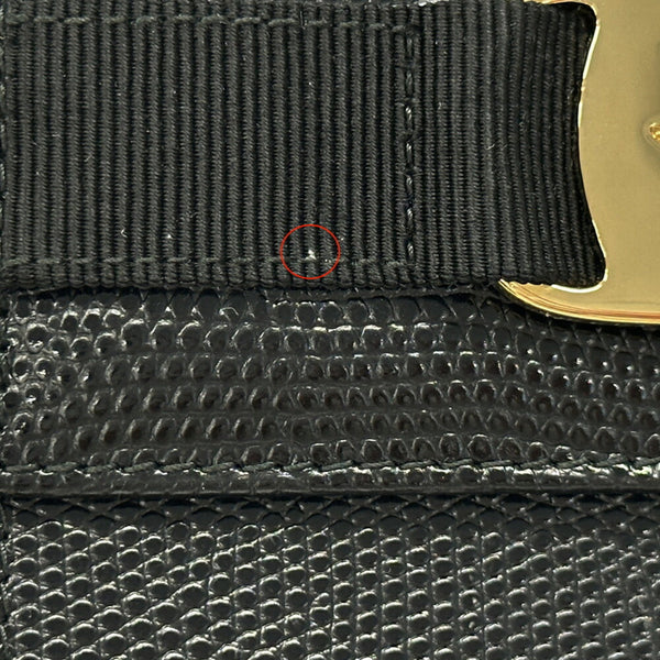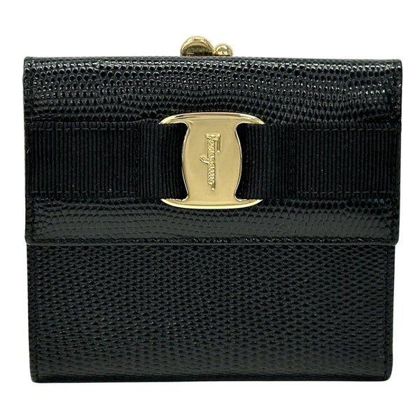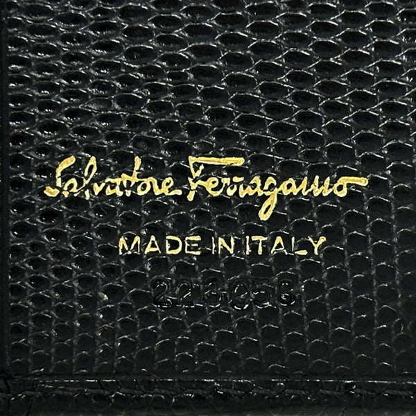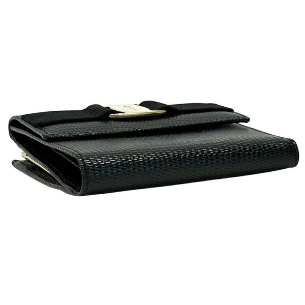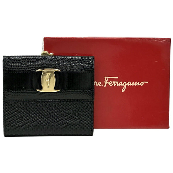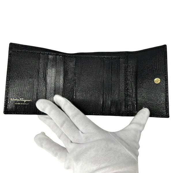 Salvatore Ferragamo Ferragamo Women's Vara Tri-fold Wallet in Embossed Leather, Black and Gold, Compact Bi-fold