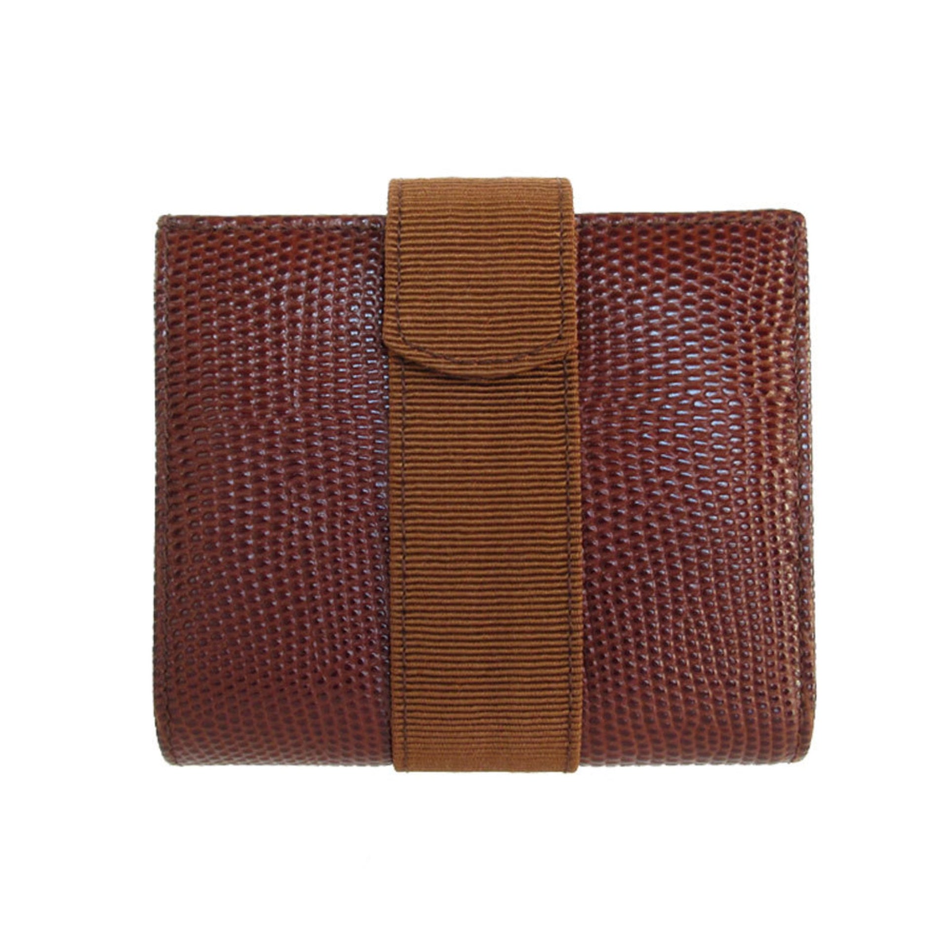 Salvatore Ferragamo Vara Bifold Wallet in Embossed Leather, Brown and Gold, Women\'s, s0685j