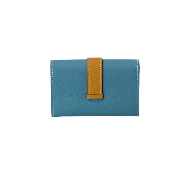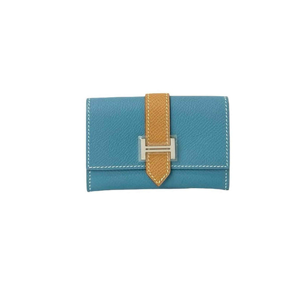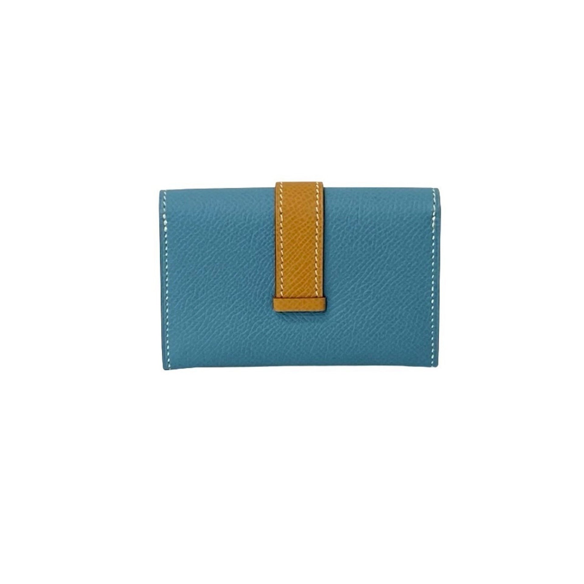 Unused, size L, engraved, HERMES Bearn Mini Verso Epsom card case, business holder, blue jean, natural, 23059