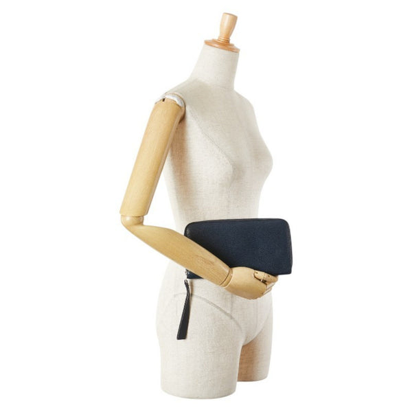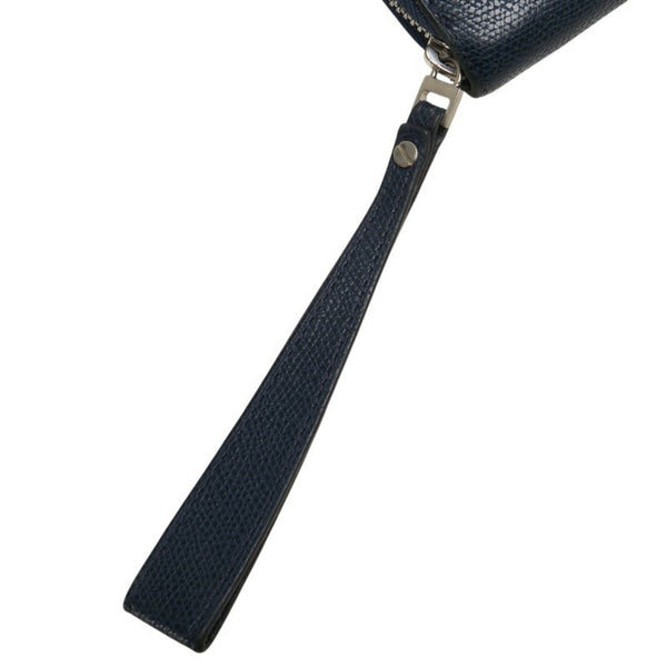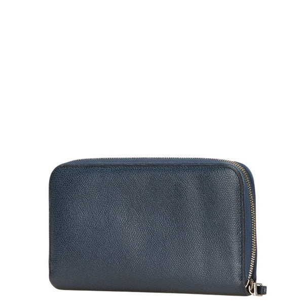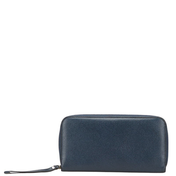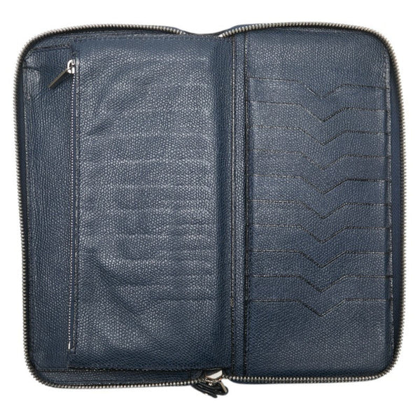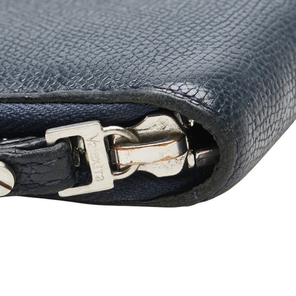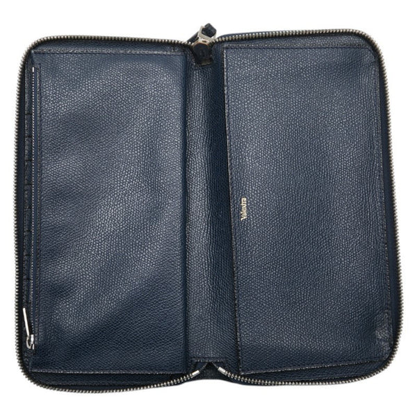 Valextra Men's Long Wallet with Round Zipper, Navy Leather