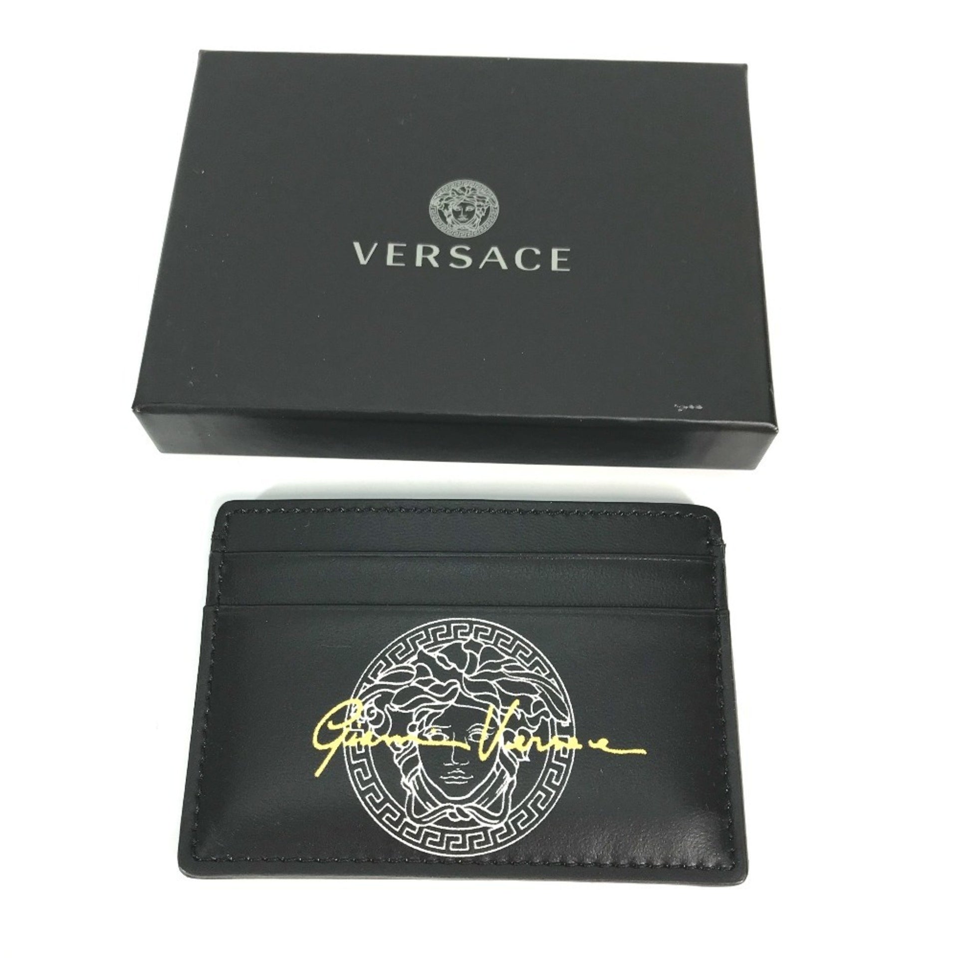 VERSACE Medusa Business Card Holder, Pass Case, Leather, Men\'s, Black