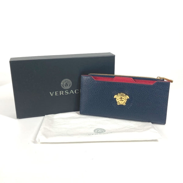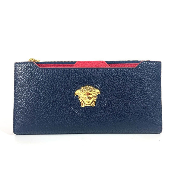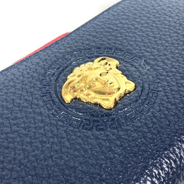 VERSACE Medusa logo long wallet, bicolor, leather, men's, women's, navy