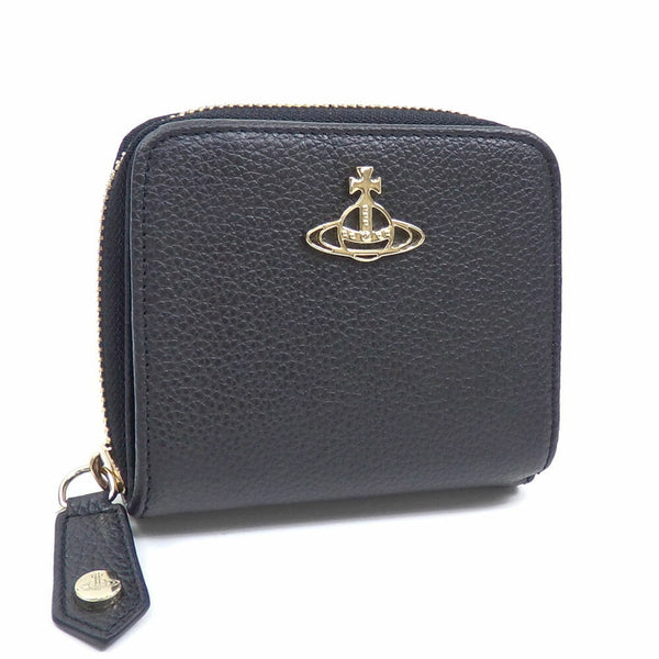 Vivienne Westwood Women's Bifold Wallet in Black Grained Leather with Orb Pattern, A220011
