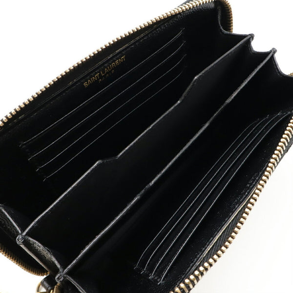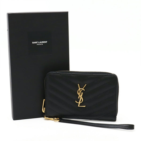 Yves Saint Laurent SAINT LAURENT PARIS YSL Cassandra Round Wallet in Black Leather with V-Stitching