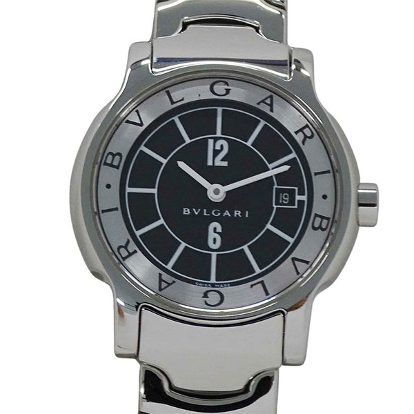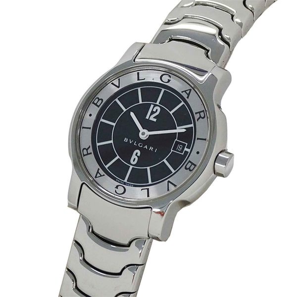 Bvlgari Solotempo Women\'s Watch with Date, Quartz Movement, Stainless Steel, ST29S, Silver/Black, Polished