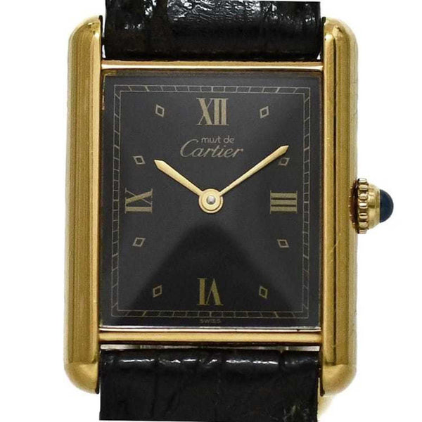 Cartier Must Tank LM Vermeil Watch f-24337 Black Gold W1001254 Stainless Steel GP Leather Quartz 55*** 590*** Square Battery-Operated Dial Men\'s Women\'s