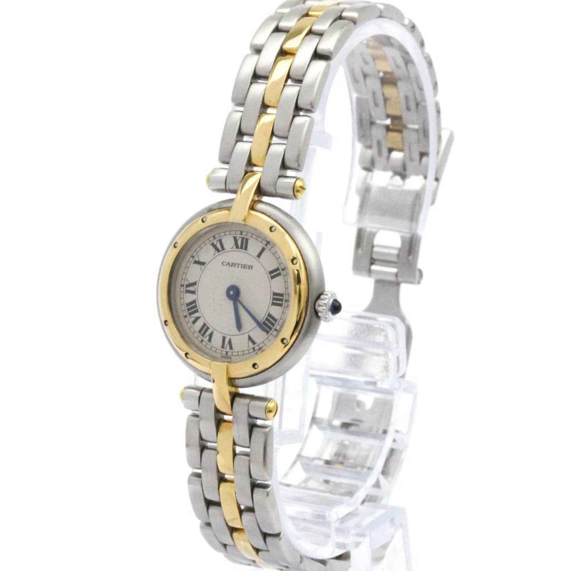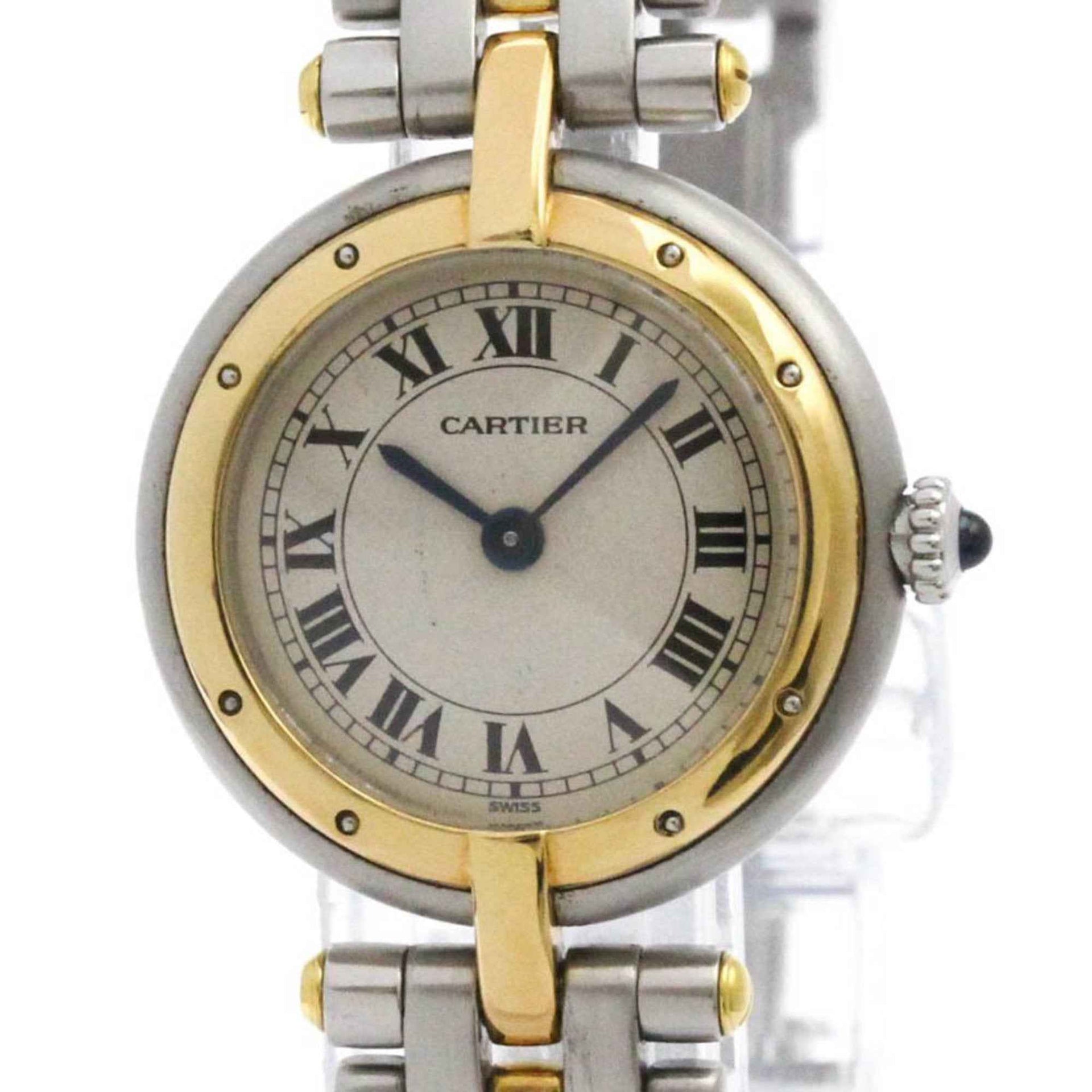 CARTIER Panthere Round 1 Row 18K Gold Steel Ladies Watch Polished