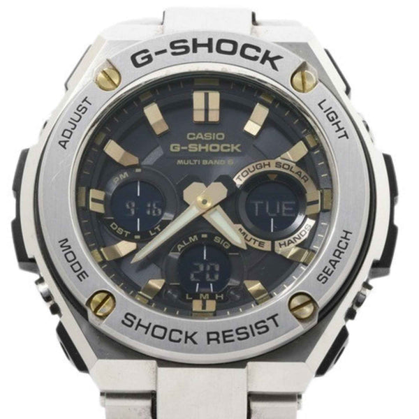 CASIO GSHOCK G-Steel W110D 1A9JF Men\'s Analog-Digital Radio-Controlled Solar Watch with Silver and Black Dial Resin Stainless Steel