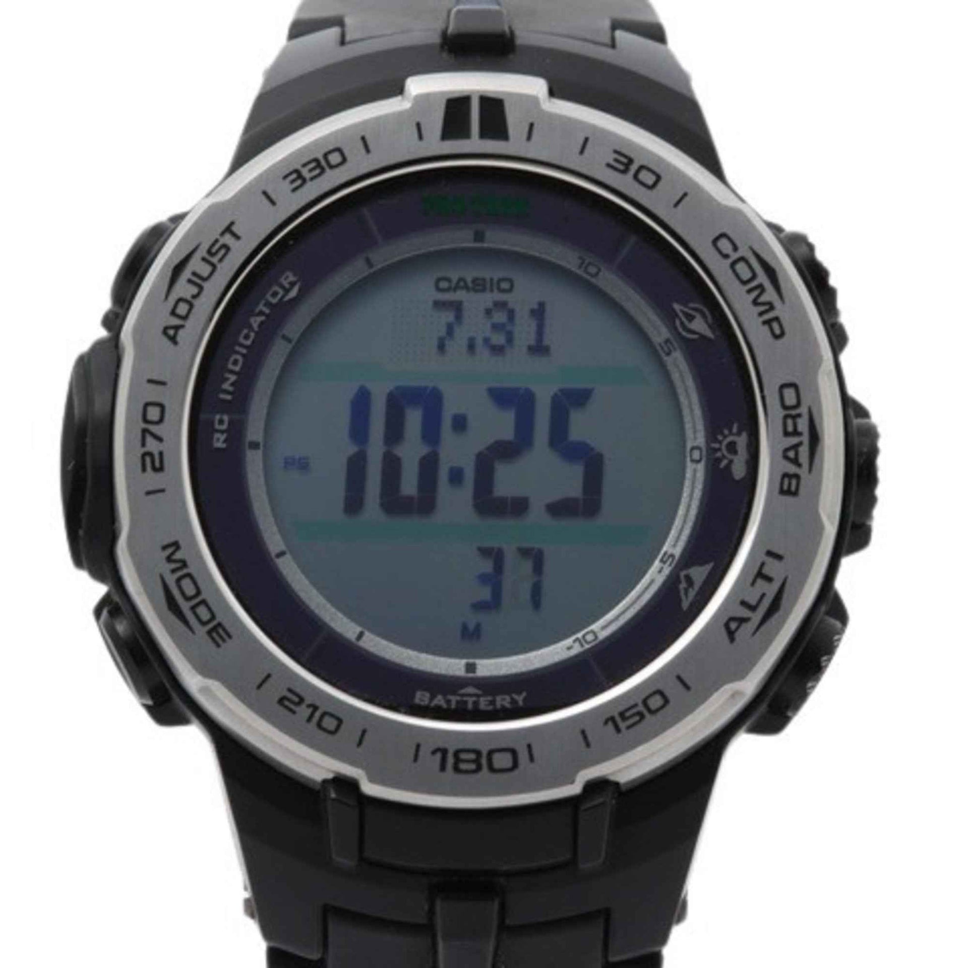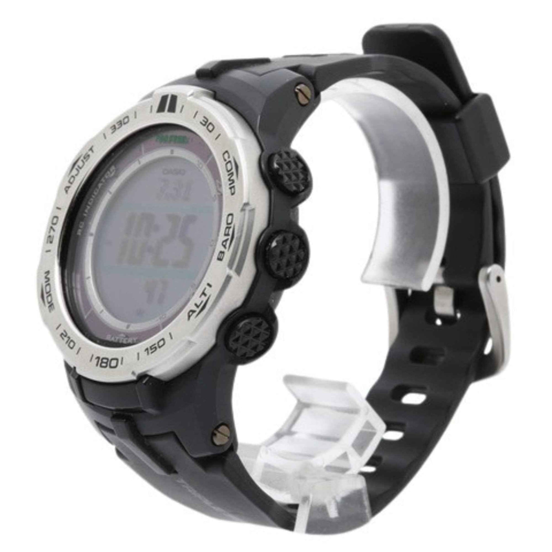 CASIO Pro Trek PRW-3100 Men\'s Watch with Silver and Black Digital Dial, Stainless Steel Resin, Radio-Controlled Solar Powered
