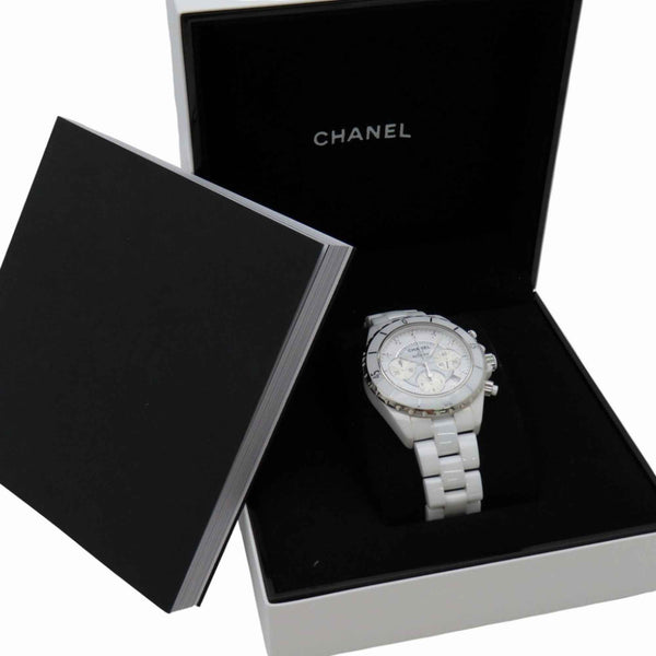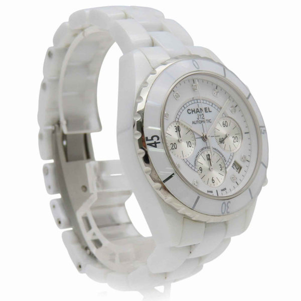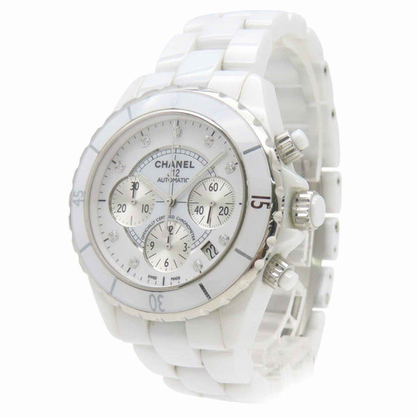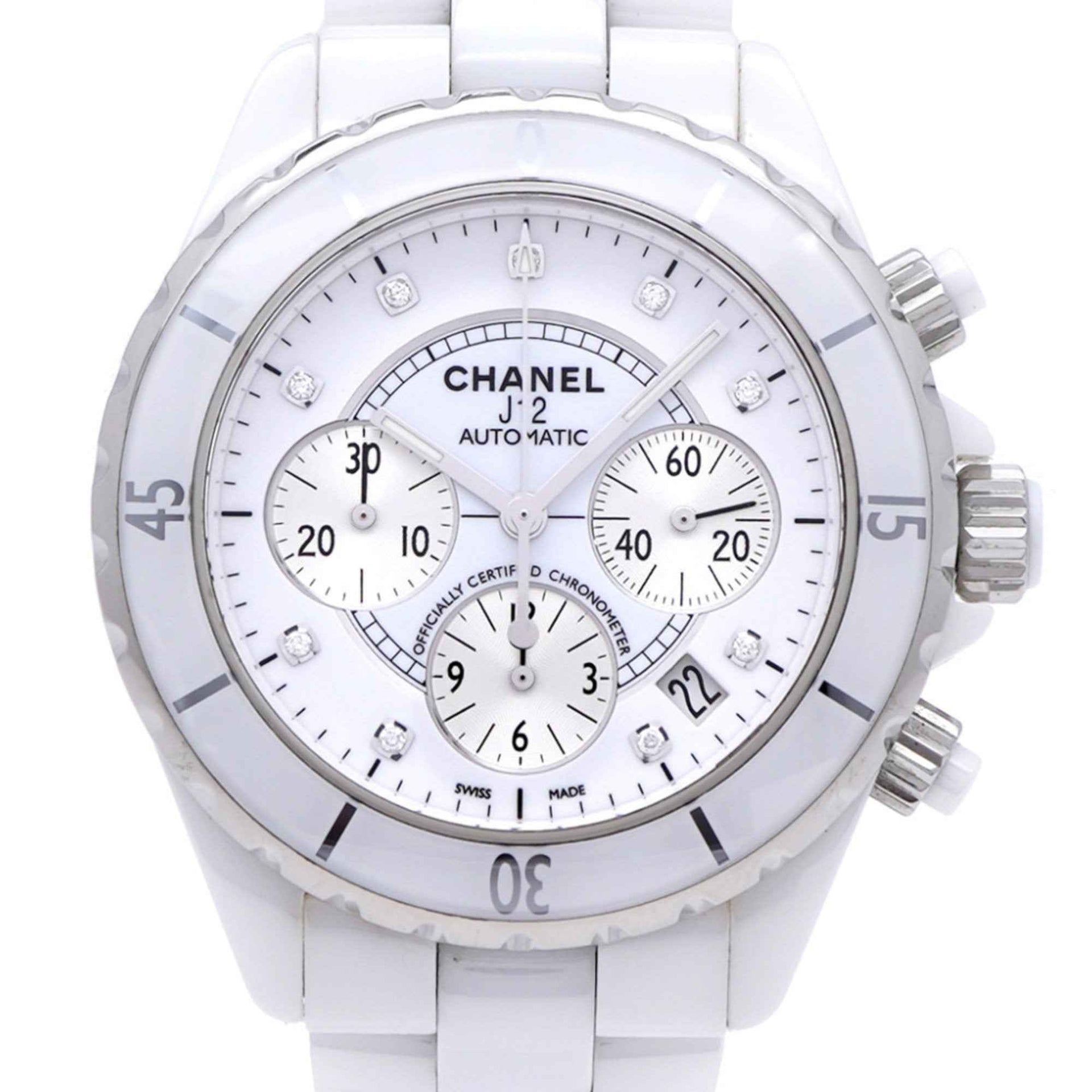 Chanel J12 Chronograph 9-Piece Diamond Watch, H2009, Automatic, White Ceramic/Diamond, Dial, 0047, CHANEL, Men\'s