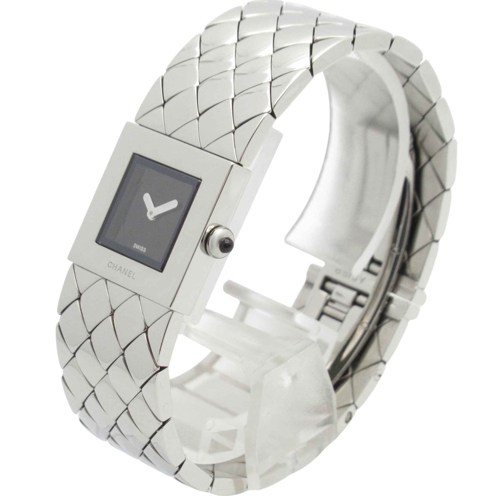 CHANEL Matelasse Watch, Stainless Steel, Women\'s, Black, H0009