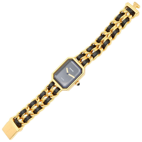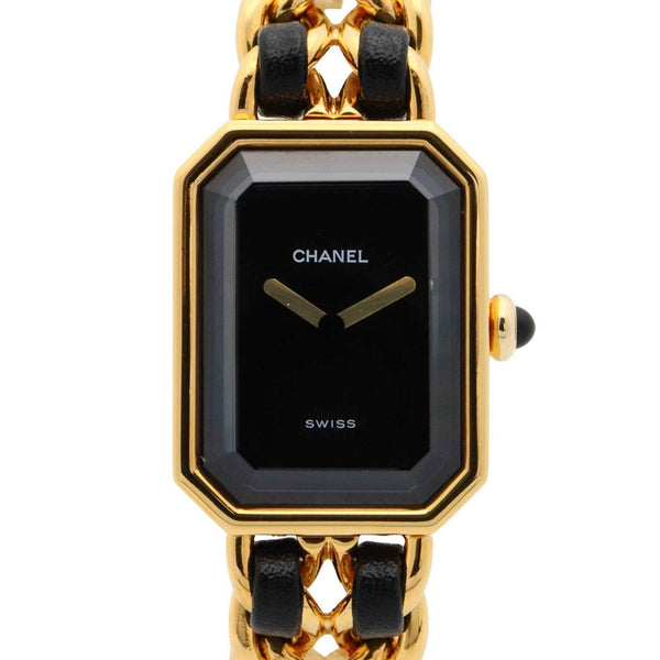 CHANEL Premiere S Watch, GP (Gold Plated), Leather, Women\'s, Black, H0001