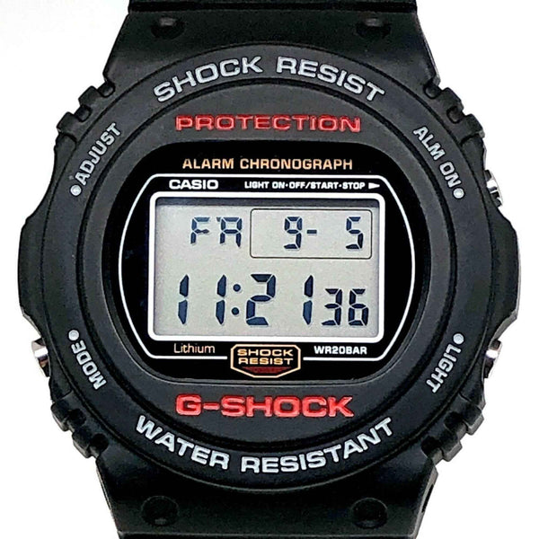G-SHOCK CASIO DW-5700-1 Watch, a reproduction of the original Sting model, with mirrored finish, screw-down case, and EL backlight. DW-5700C replica released in August 2001. Available at Mikunigaoka store. Product code: IT41Z9P84E30.