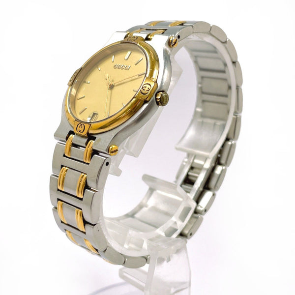 GUCCI 9000M Stainless Steel Watch, Silver/Silver Quartz Movement, Gold Dial, Unisex