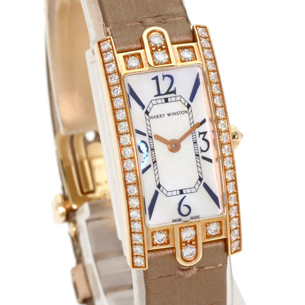 Harry Winston 332LQR AVCQHM16RR017 Avenue C Mini Watch, K18 Pink Gold, Satin, Diamond, Women\'s