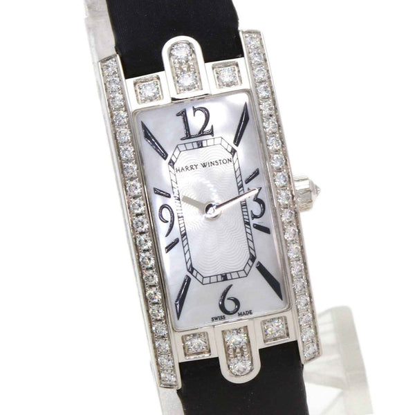Harry Winston AVCQHM16WW024 Avenue C Mini Watch, 18K White Gold with Leather and Satin, Diamonds, Women\'s