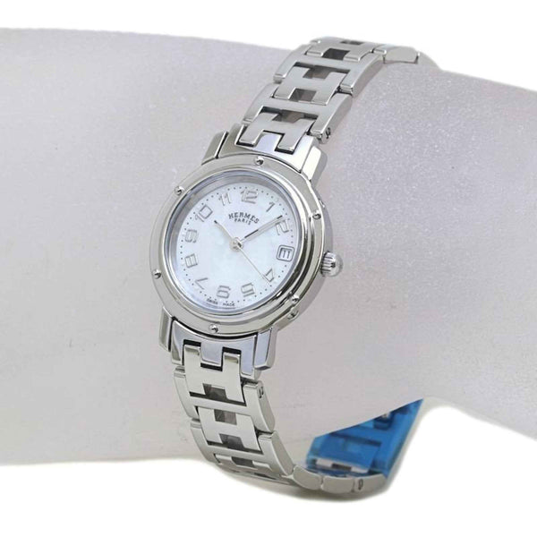 HERMES Clipper Nacrée White Shell Watch with New Buckle, Women\'s, CL4.210.212, 3821 Stainless Steel, 40044