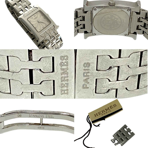 HERMES H Watch Stainless Steel Wristwatch for Men and Women, Silver, 23685