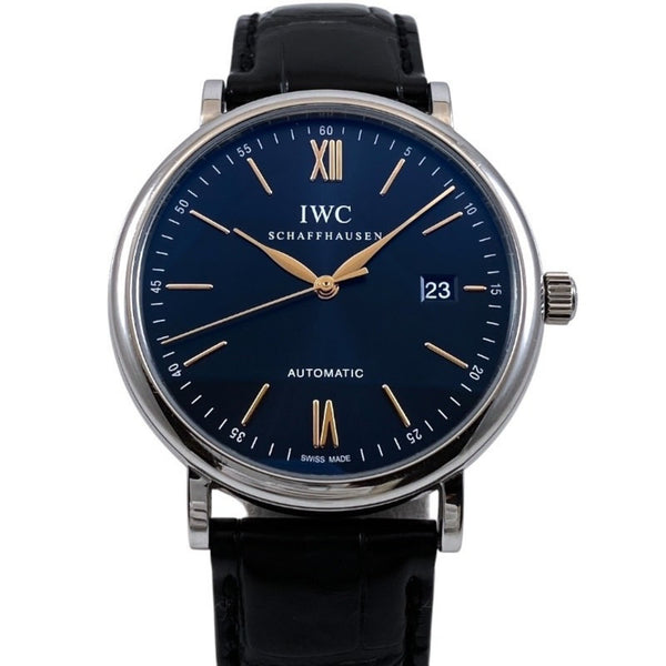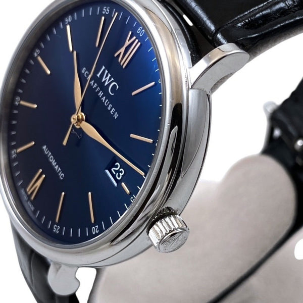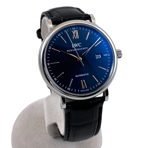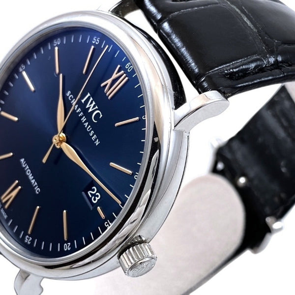 IWC International Watch Company Portofino Automatic IW356523 Men's Stainless Steel Wristwatch with Leather Strap and Blue Dial