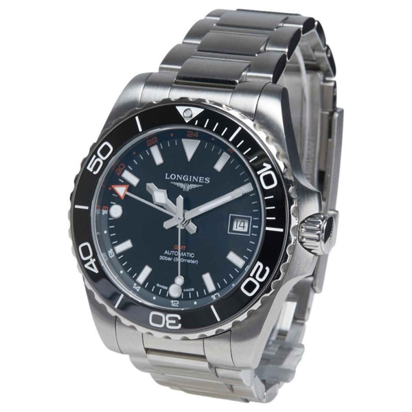 Longines HydroConquest GMT Watch L3.790.4.56.6 Automatic Black Dial Stainless Steel Men\'s LONGINES