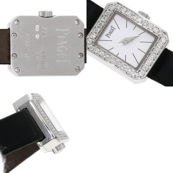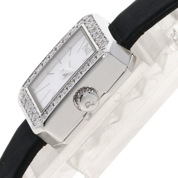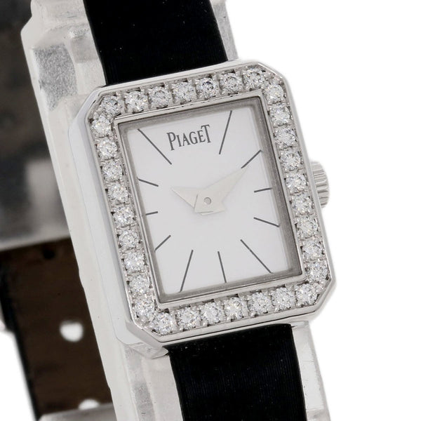 Piaget G0A34502 Mini Protocol Diamond Bezel Watch in 18K White Gold and Leather Strap for Women