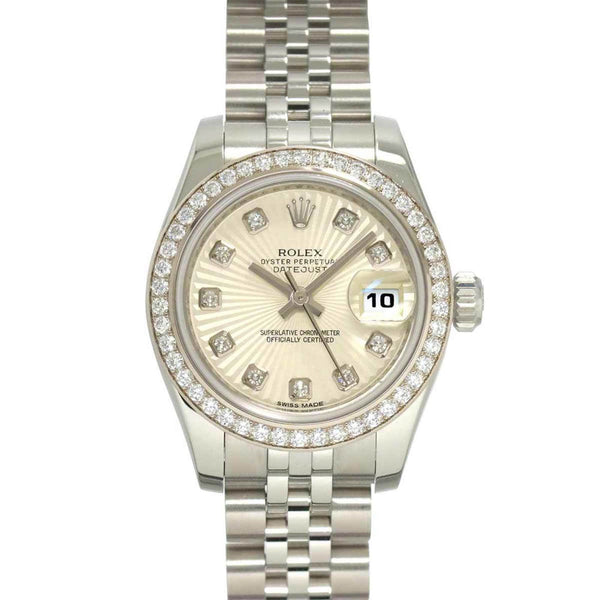 Rolex Datejust 179384G G-number, Roulette Diamond Bezel, Women\'s Watch, 10 Diamonds, Silver, 18K White Gold, Automatic