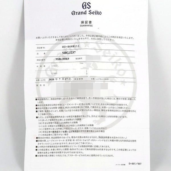 Seiko Grand Sports Collection Mechanical Hi-Beat 36000 9S86-00K0 SBGJ237 SS Wristwatch Automatic
