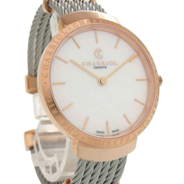 Unused Charriol Saint-Tropez Stainless Steel White Shell with Dial and Pink Gold Quartz Wristwatch 0595 CHARRIOL
