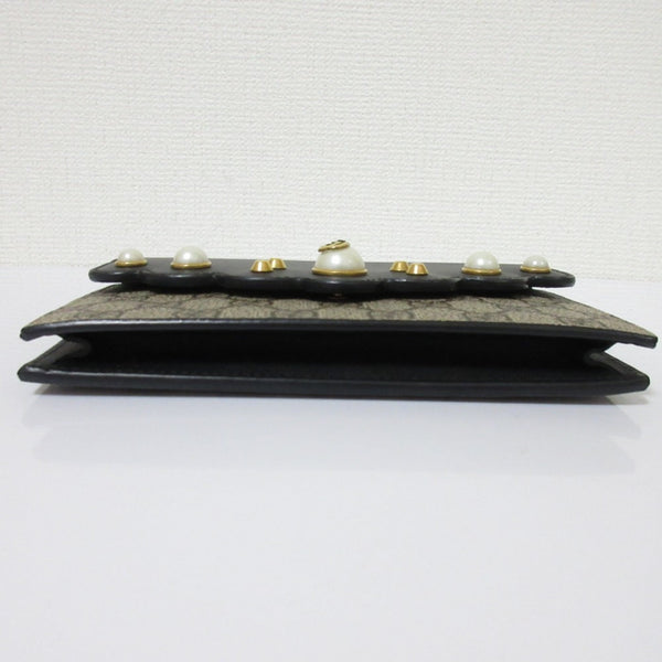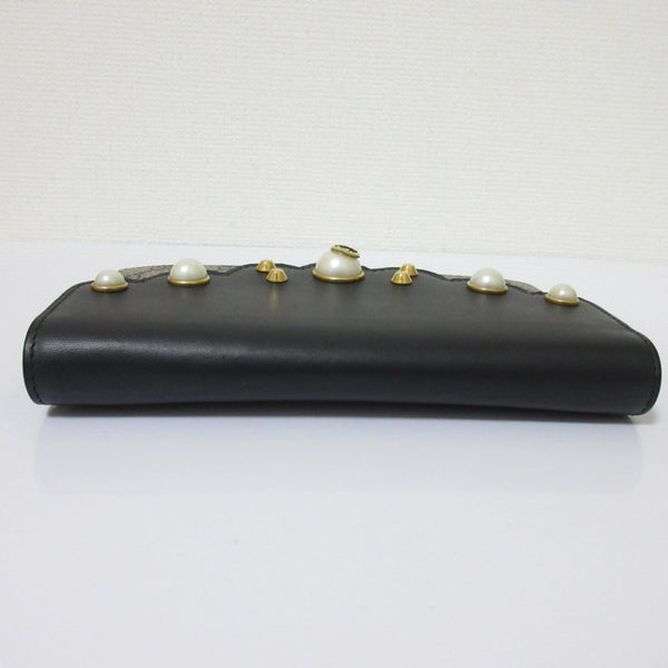 GUCCI GG Supreme Scallop Pearl Flap Chain Shoulder Wallet Handbag 431478 Black Women\'s