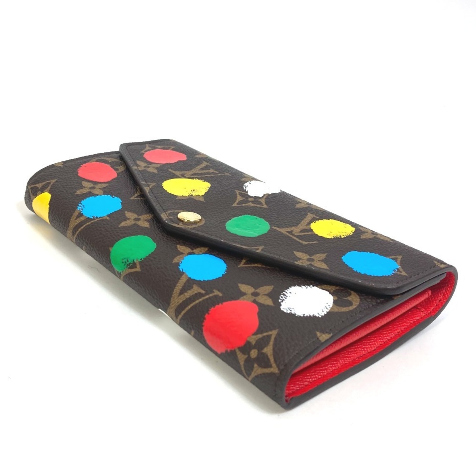 LOUIS VUITTON M81980 LV x YK Yayoi Kusama Monogram Portefeuille Sarah NM Bifold Long Wallet Canvas Women\'s Brown Like New