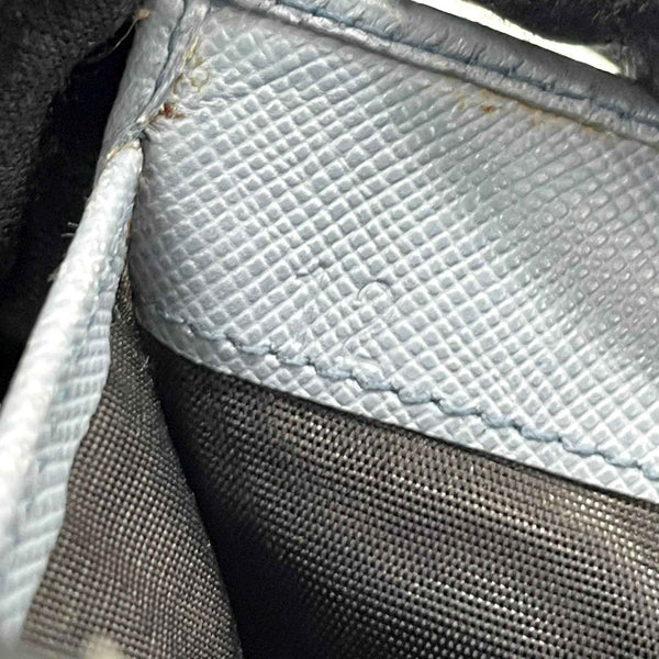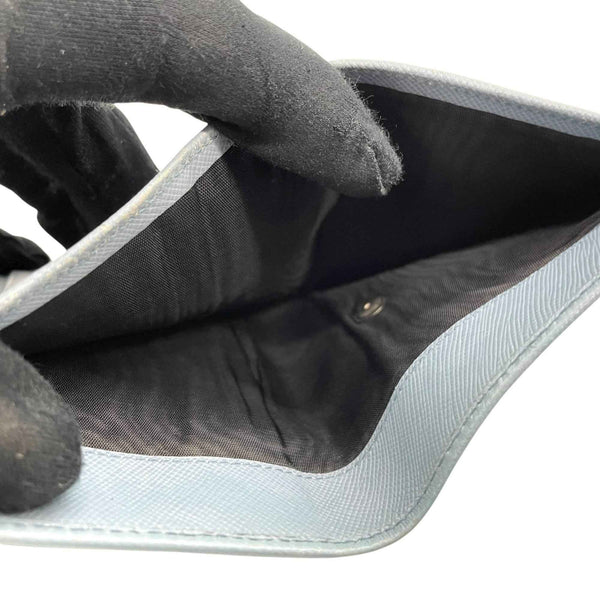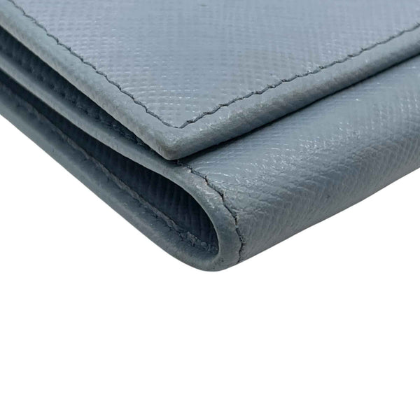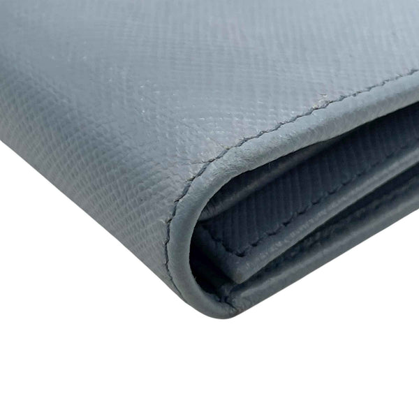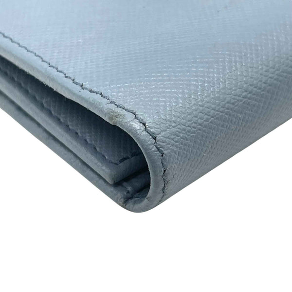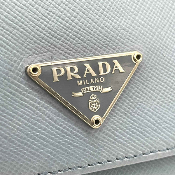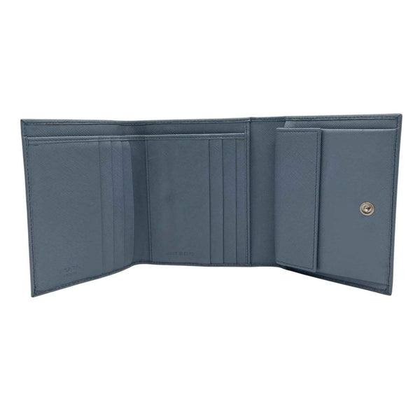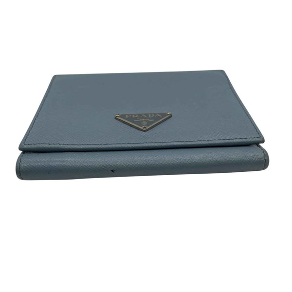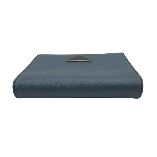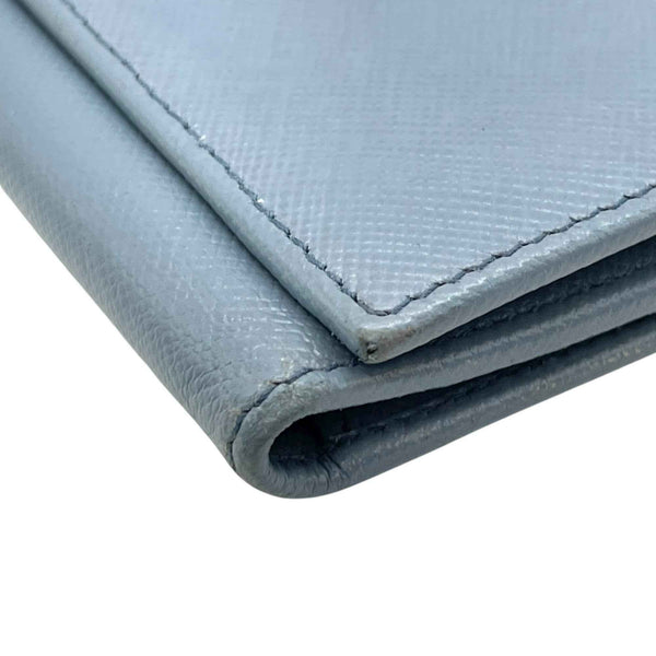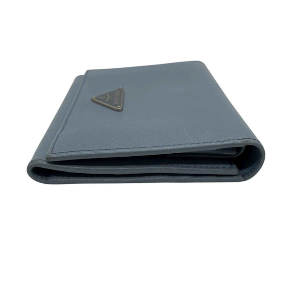 Prada Saffiano Leather Bi-fold Wallet with Triangle Logo, Light Blue, Women's Compact M5