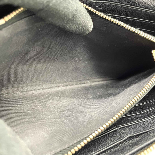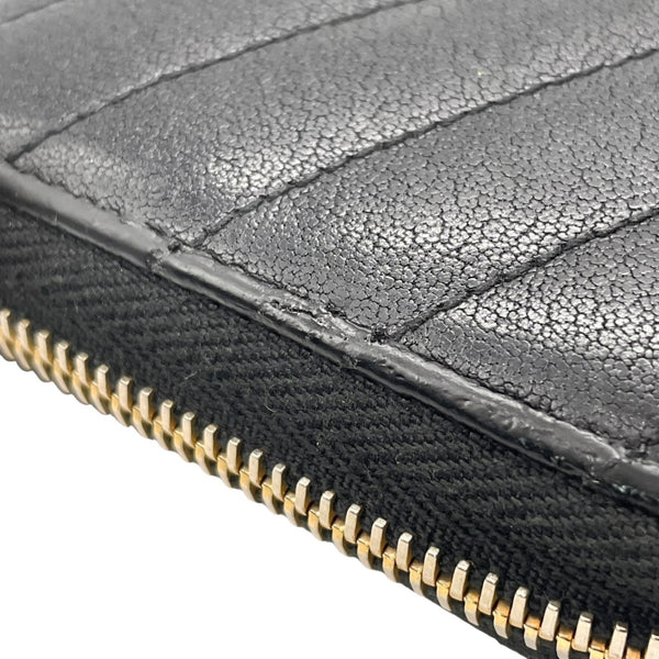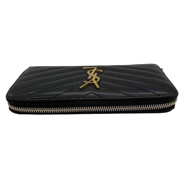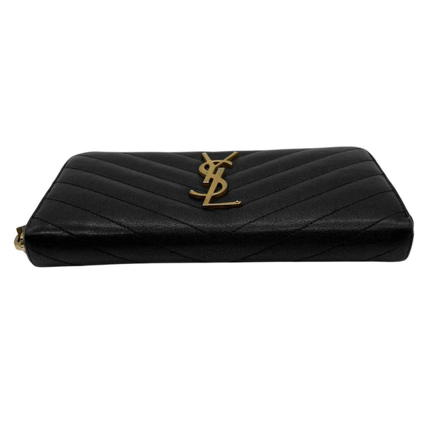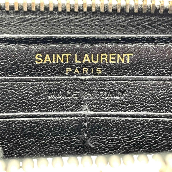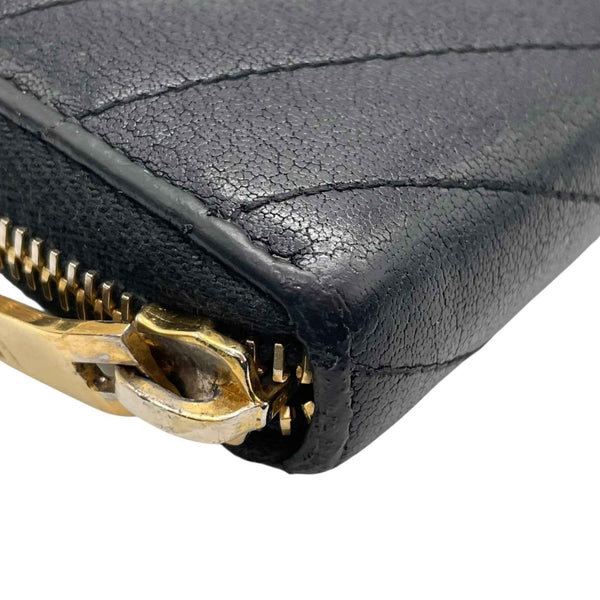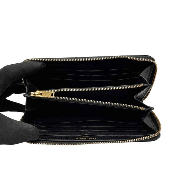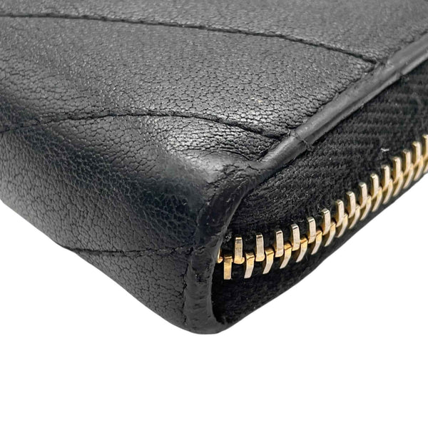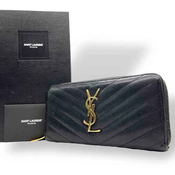 Yves Saint Laurent SAINT LAURENT PARIS Monogram V-Stitch Round Zip Long Wallet in Black Caviar Leather with YSL Logo and Box (w5)