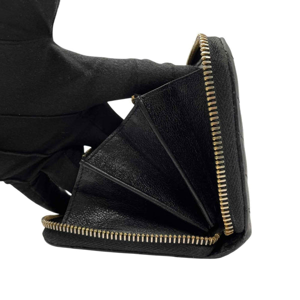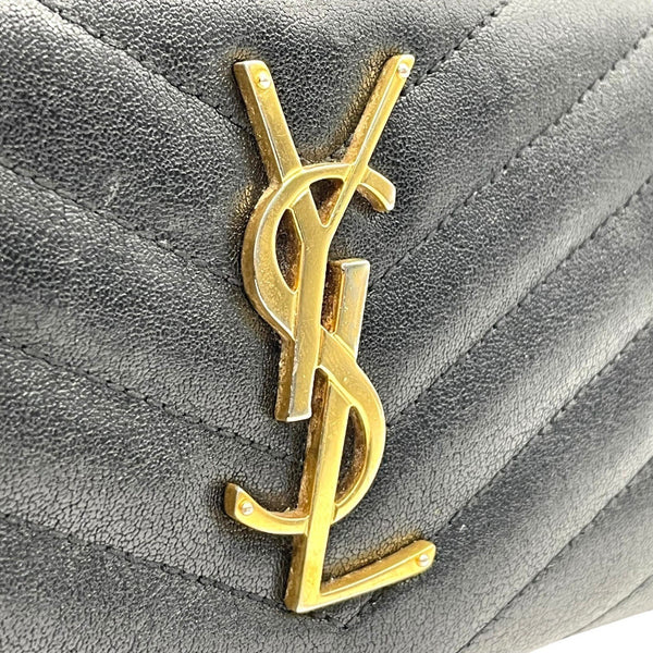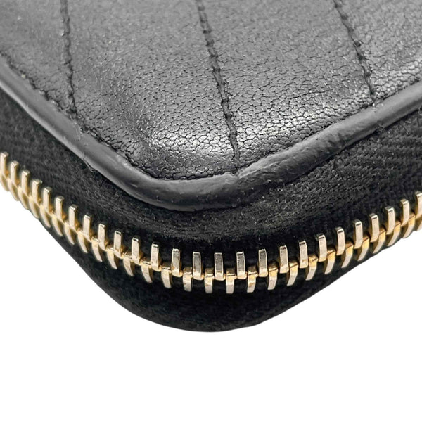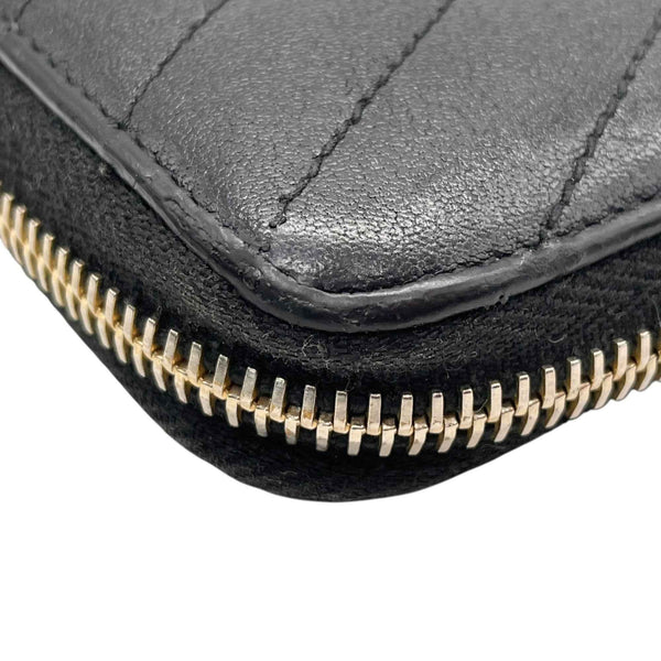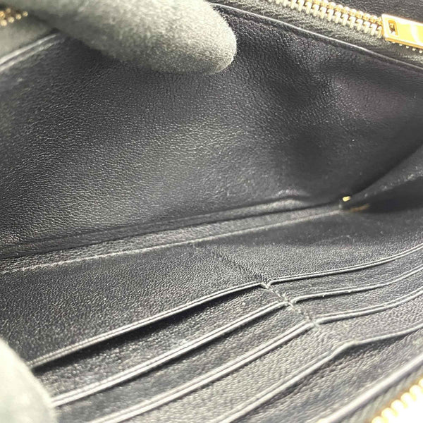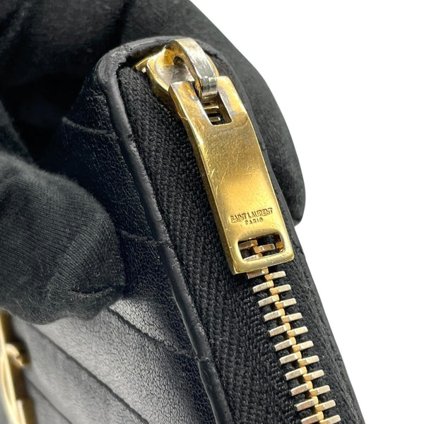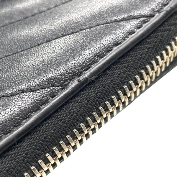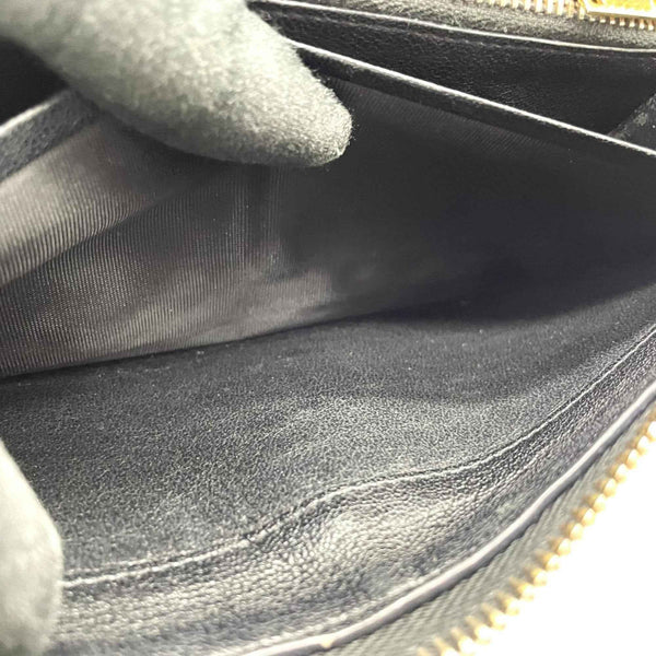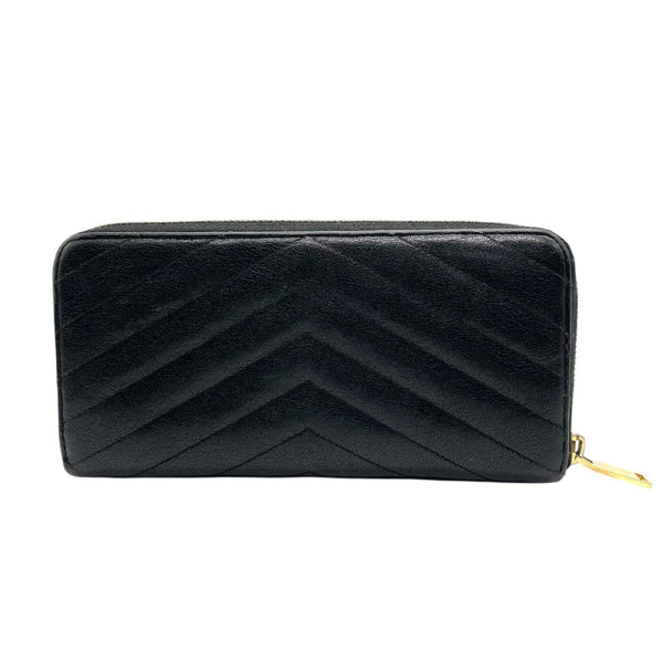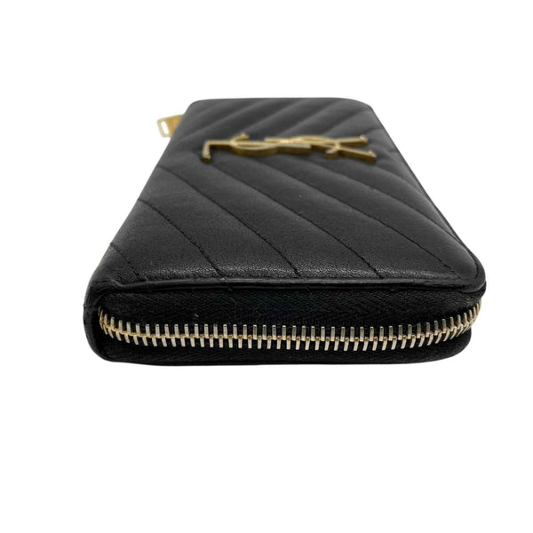 Yves Saint Laurent SAINT LAURENT PARIS Monogram V-Stitch Round Zip Long Wallet in Black Caviar Leather with YSL Logo and Box (w5)