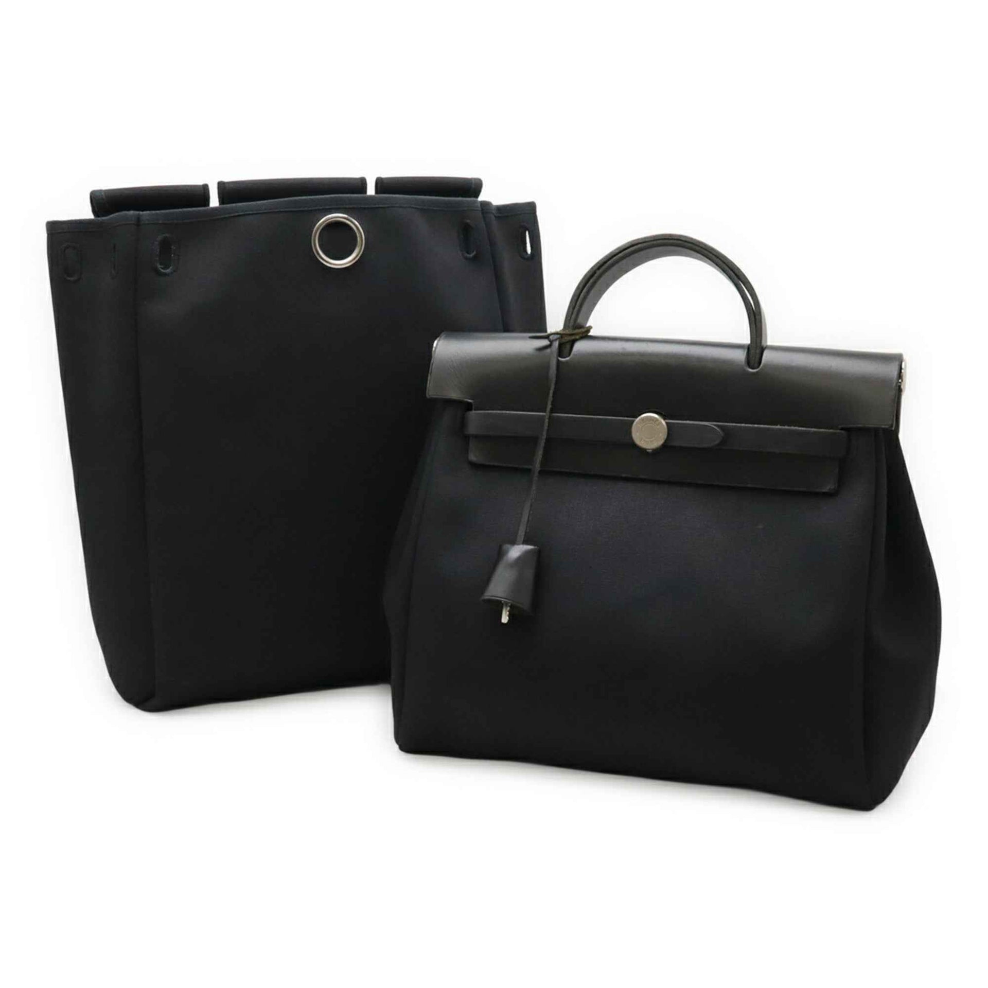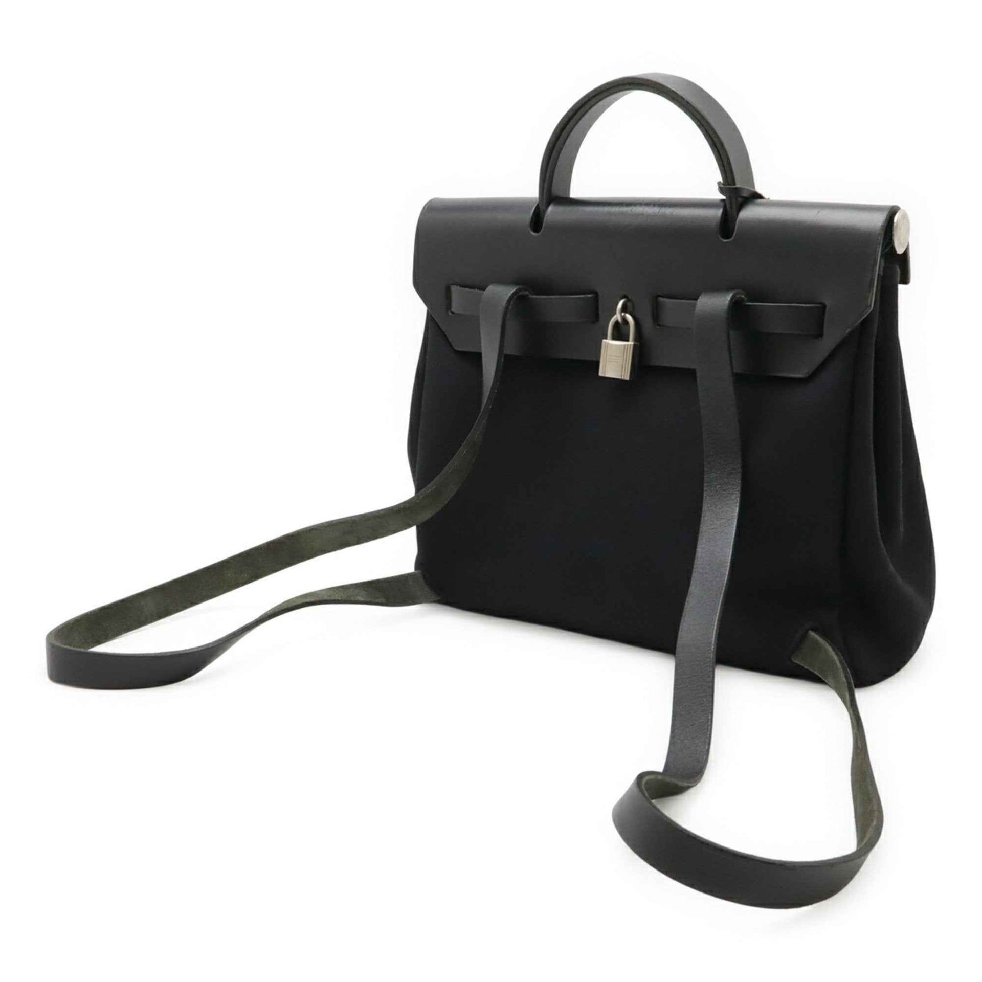HERMES Hermès Airbag Ad PM Backpack/Handbag, Toile Officier Leather, Black, E Stamp