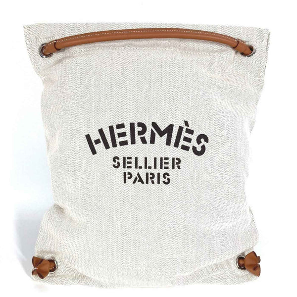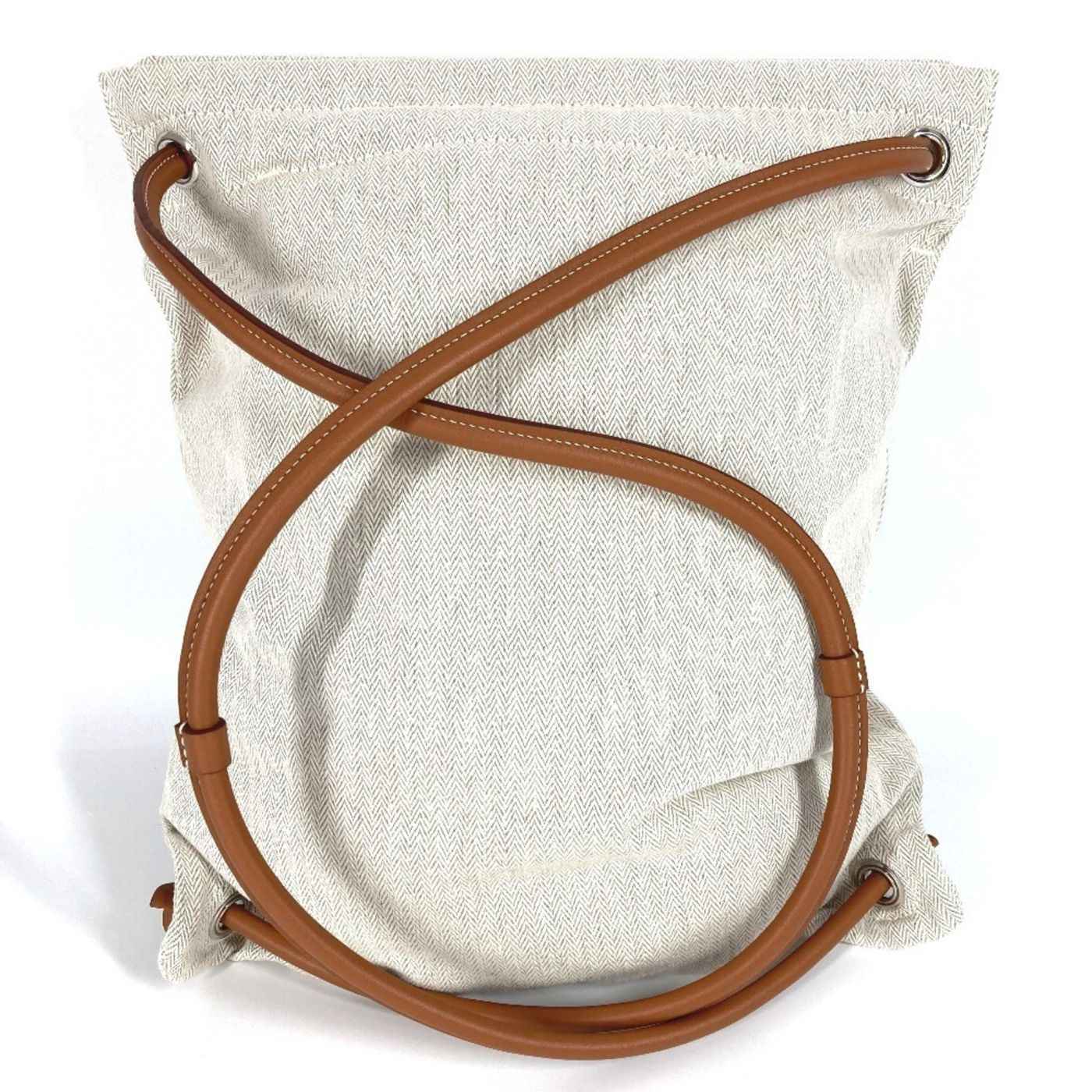 HERMES Sac Aline MM Logo Backpack, Toile Chevron, Barenia, Men\'s/Women\'s, Beige