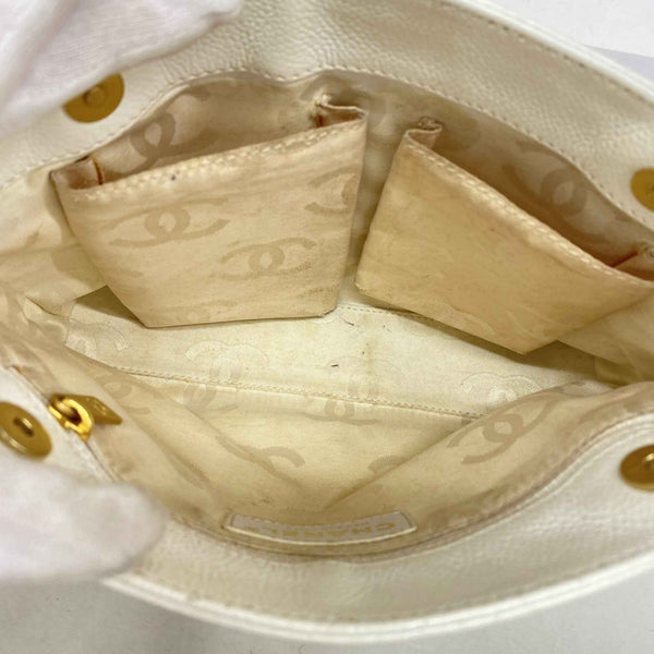 Chanel Caviar Leather Handbag White Women\'s P1439705