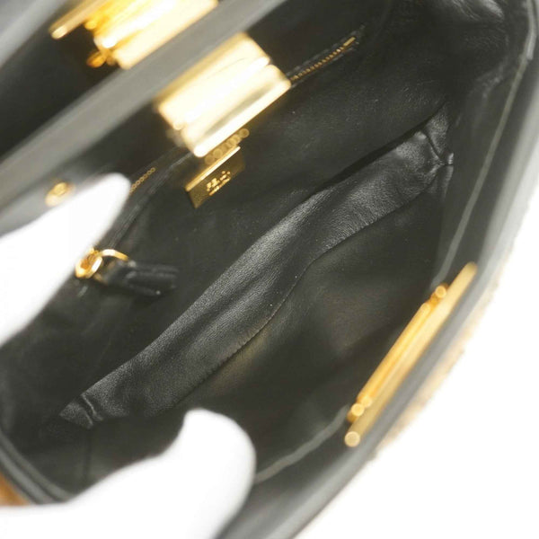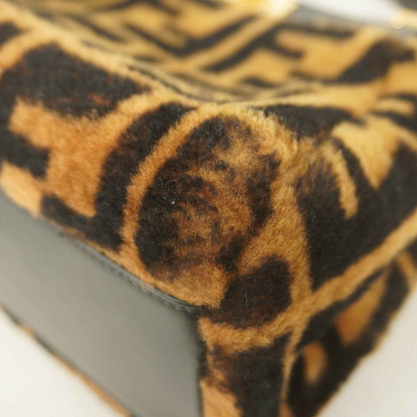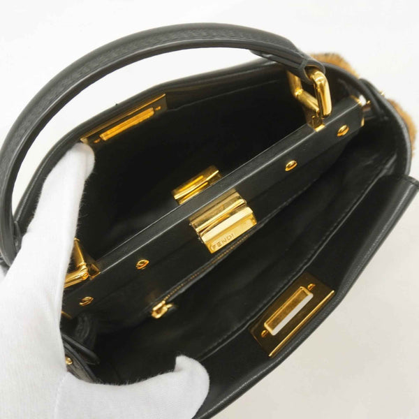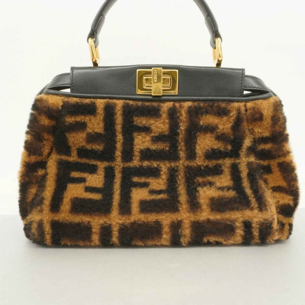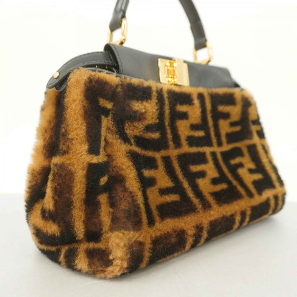 Fendi Zucca Mini Peekaboo Handbag in Brown and Black Mouton, 2-Way Bag for Women, P1463684